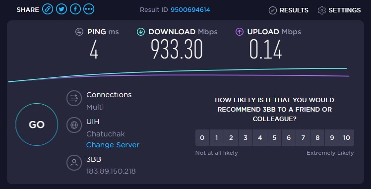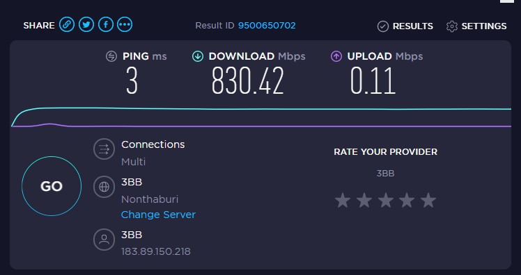 3ฺBB ความเร็วอัพโหลดจาก 500mbps เหลือเท่าในรูป