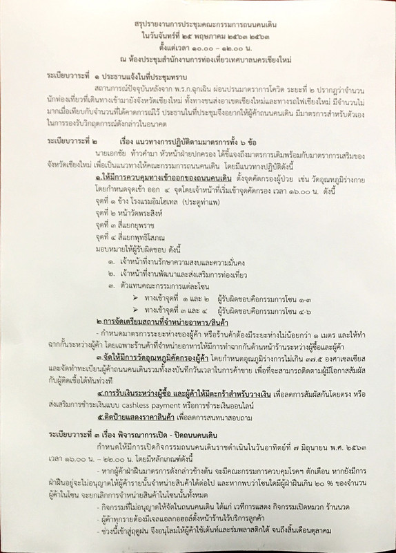สรุปรายงานการประชุมคณะกรรมการถนนคนเดิน 25 พค 2563