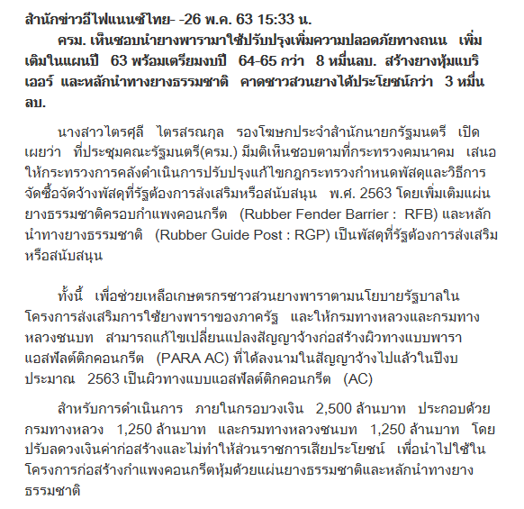 ครม.เห็นชอบ...ทุ่มงบกว่า80,000ล้านนำยางพารามาใช้ปรับปรุงเพิ่มความปลอดภัยบนท้องถนน