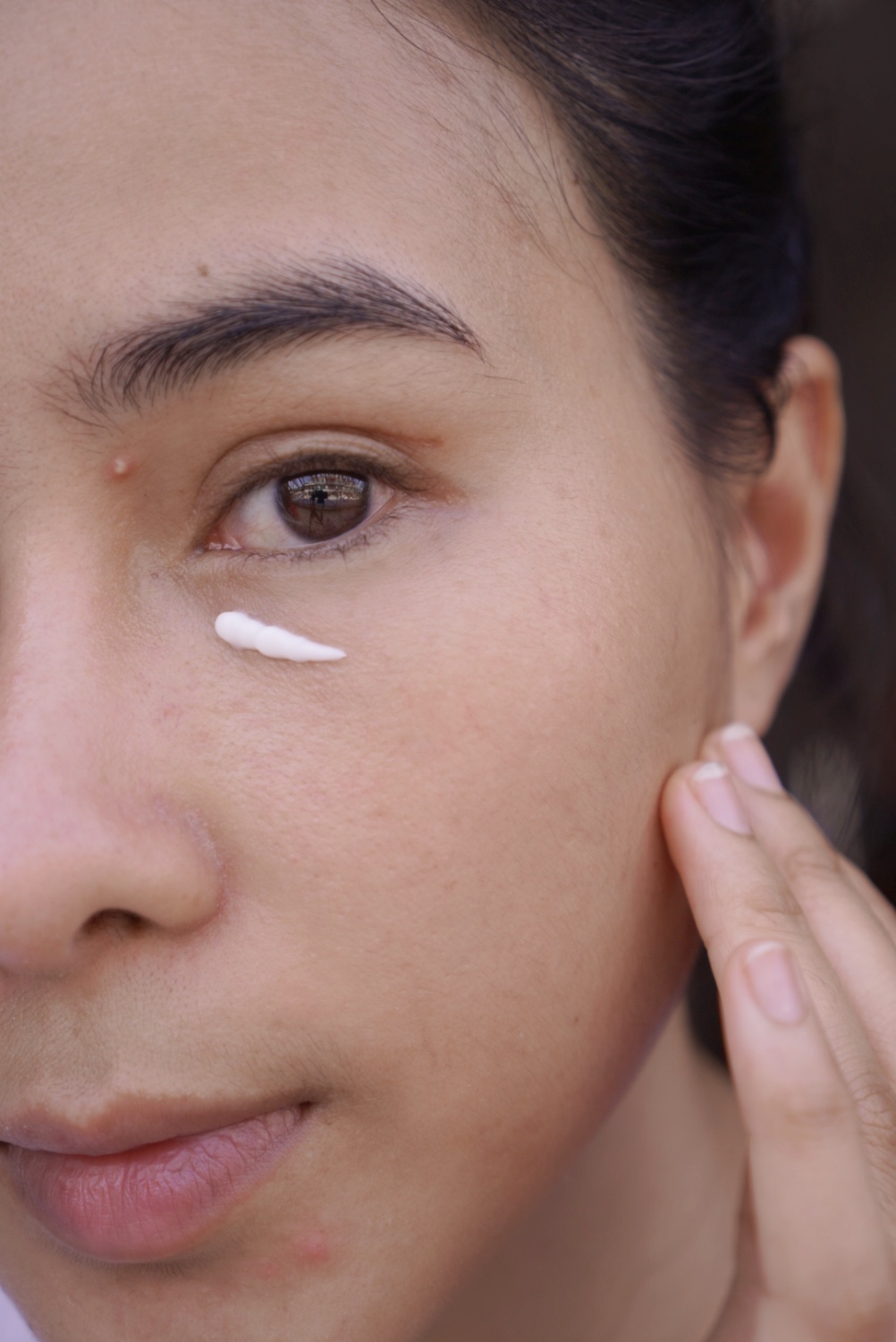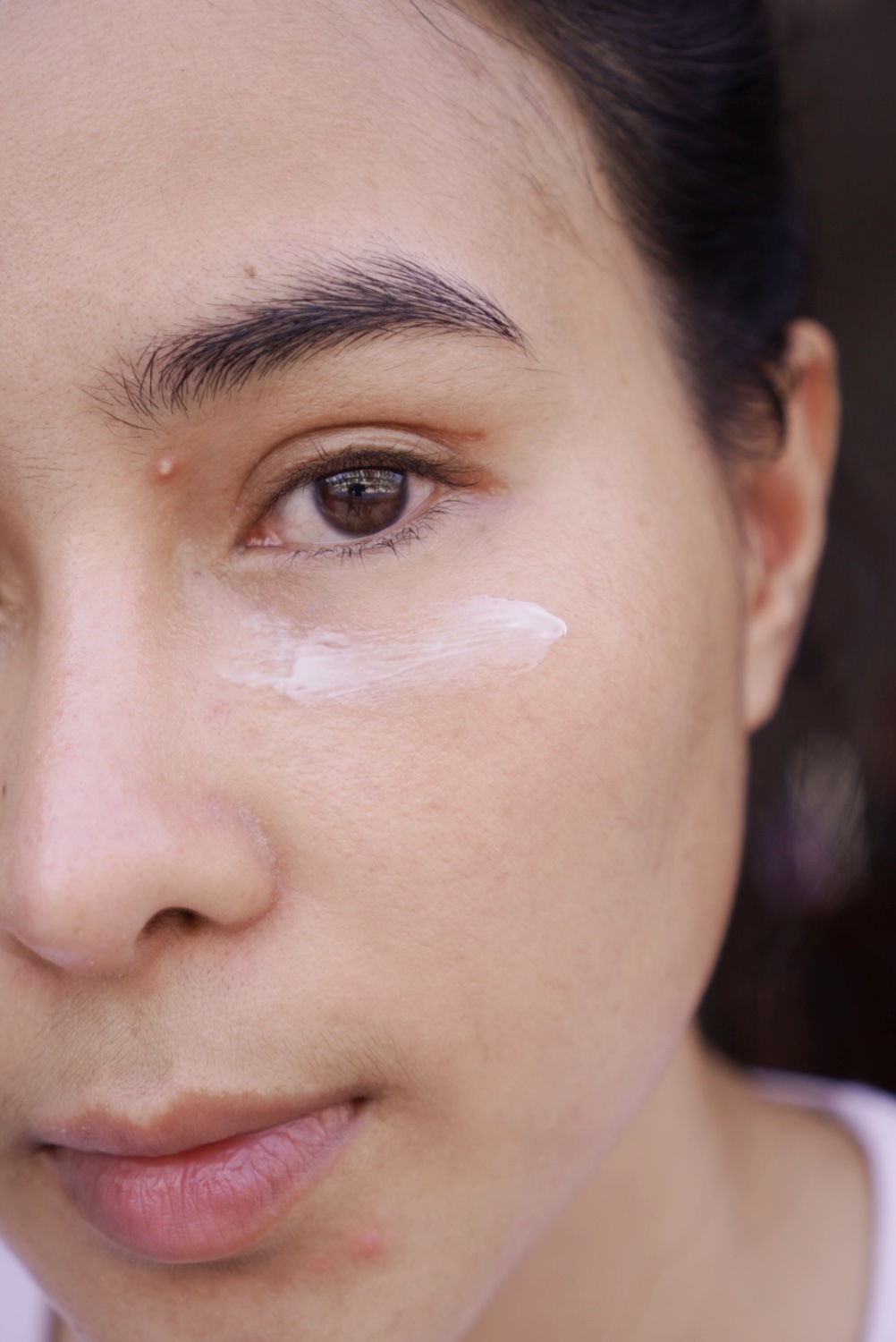 ทาลงไปที่ใต้ตาแล้ว ไม่ต้องกลัวว่าจะแสบตานะคะ ไม่แสบแน่นอน เพราะ อาย ทรีทเมนท์ตัวนี้ ไม่มีสี ไม่มีแอลกอฮอล์แล้ว ก็ไม่มีน้ำหอม ไม่แพ้ ไม่แสบตาแน่นอนค่ะ