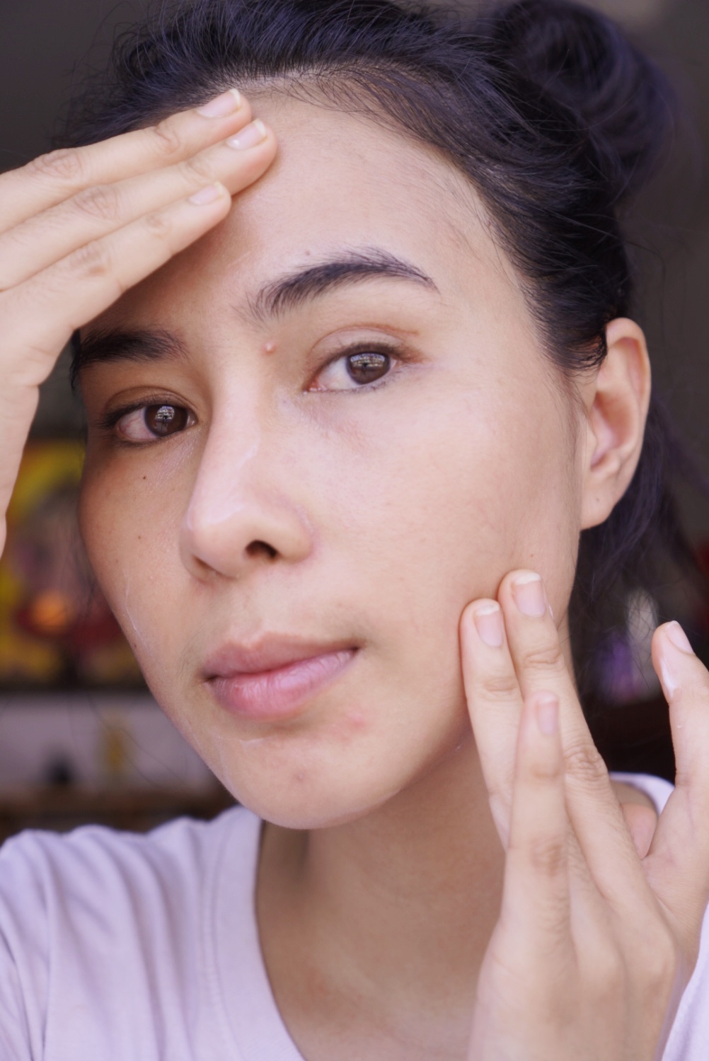 หลังจากลงเซรั่ม ที่ผิวหน้าของเราแล้วใช้ปลายนิ้วนวด วนๆ เบาๆ