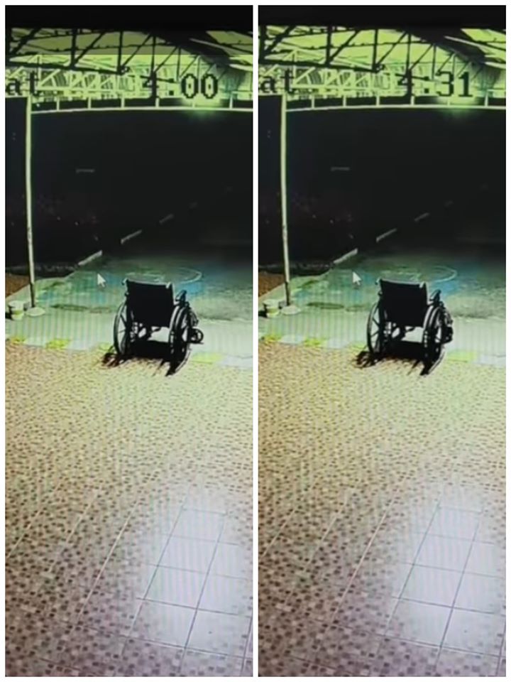 เป็นภาพจากกล้องวงจรปิดชวนขนลุก เมื่อรถเข็นวีลแชร์ขยับได้เอง