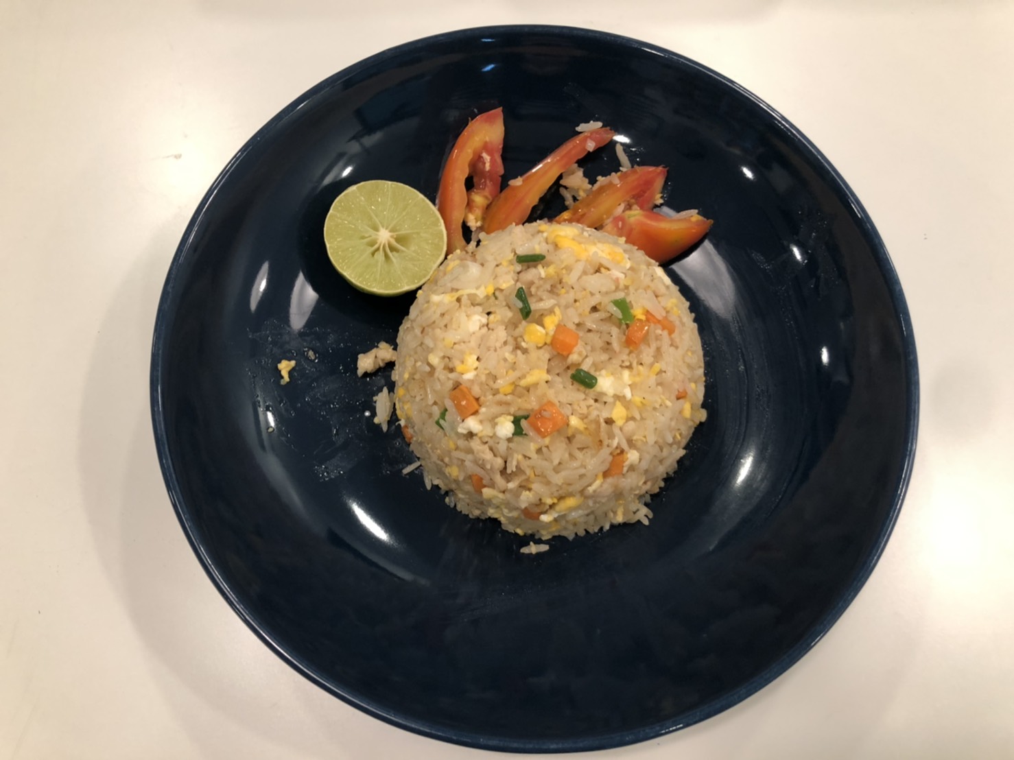 อยากรู้เหมือนกันจะต่างกันของป้าป้อมคือข้าวผัดกุ้ง🦞 แต่เราแพ้กุ้งเลยขอเปลี่ยนเป็นเนื้อไก่🐔 แทนนะ 🍝