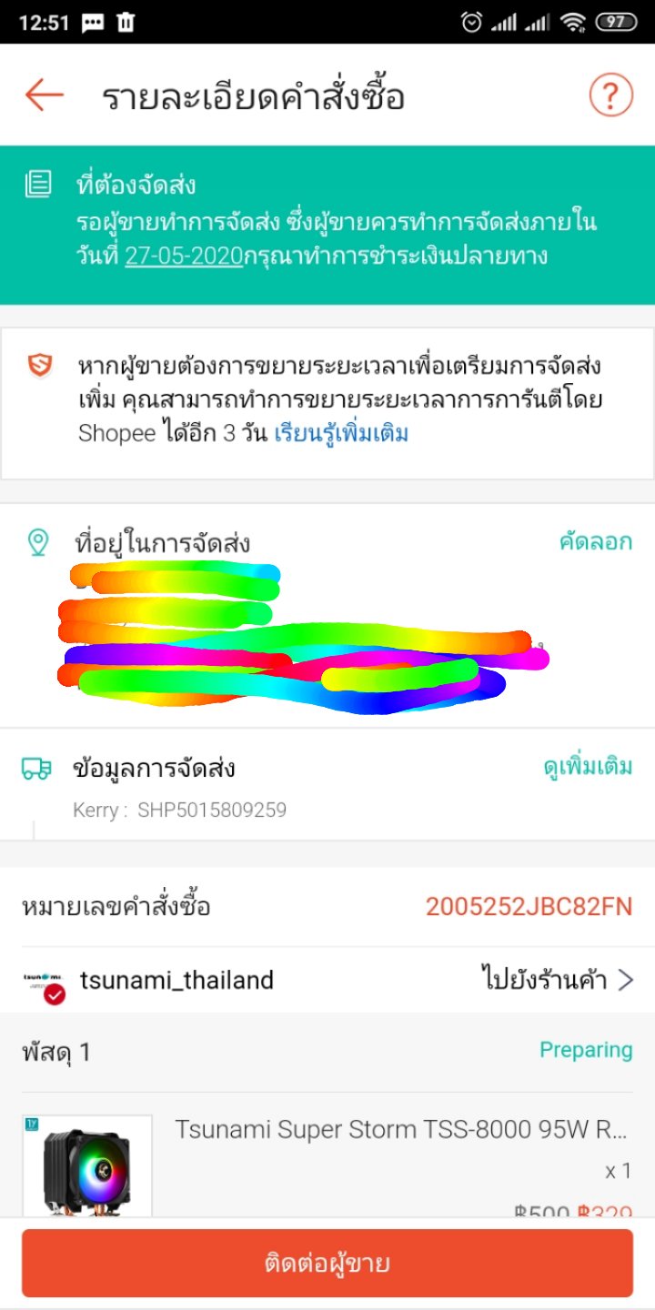 สั่งไปตั้งแต่วันที่25/05/2020 จนวันที่28ก็ยังไม่ส่งเข้าขนส่ง
