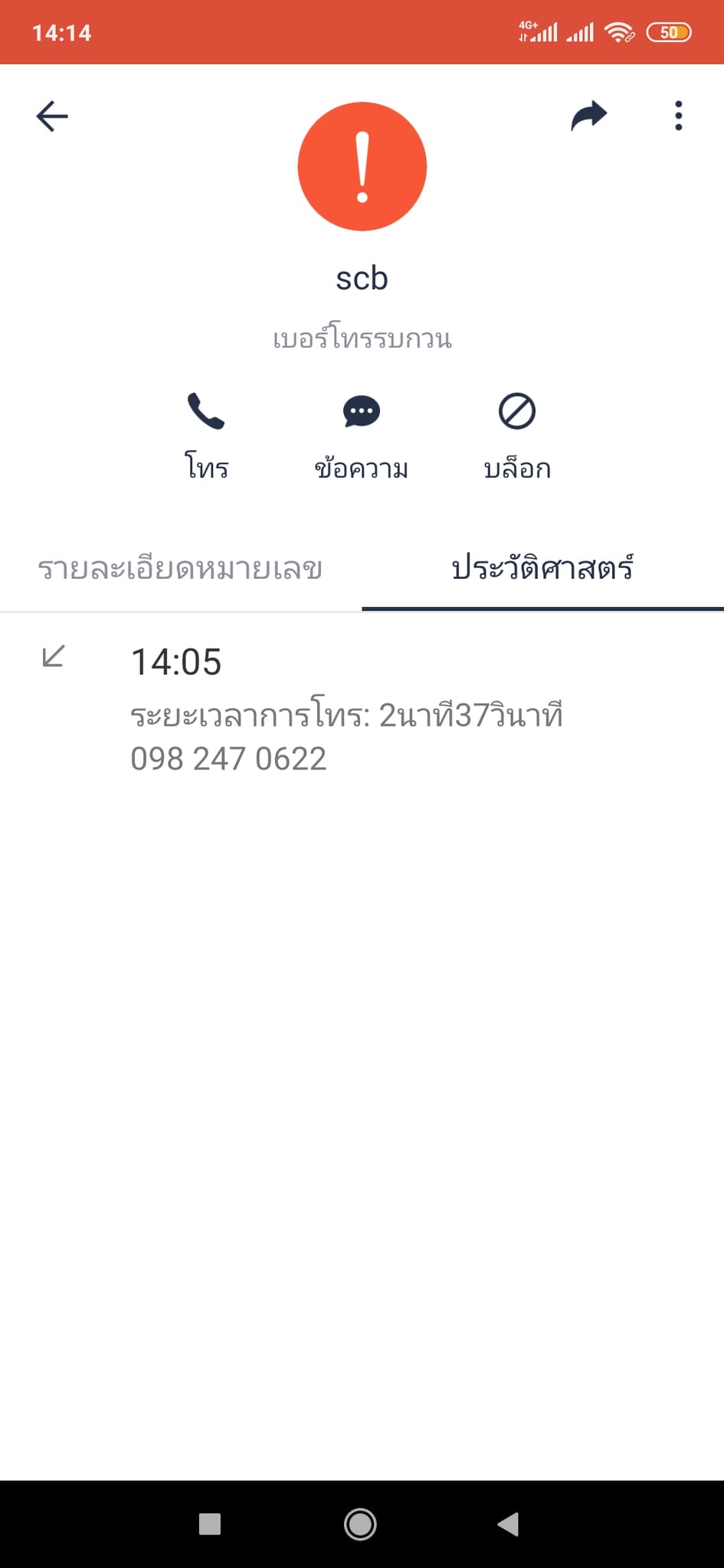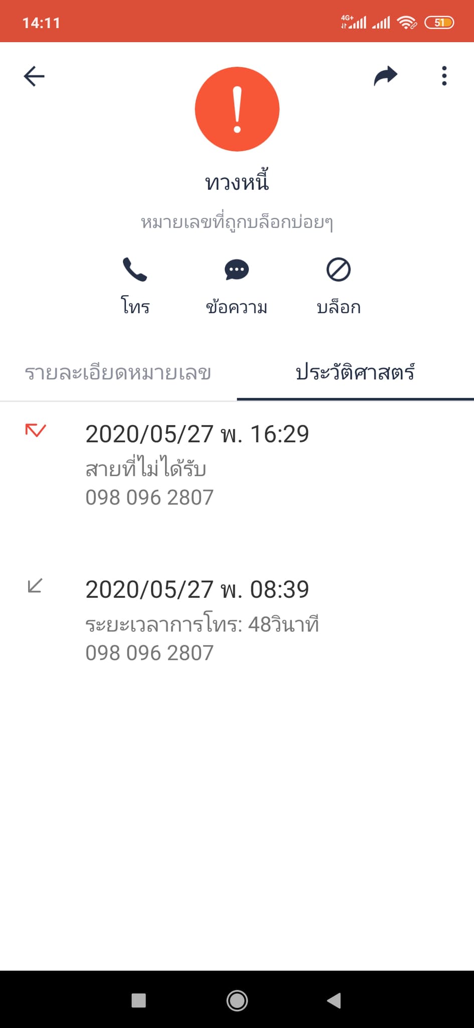 มีคนโทรมาจากเบอร์ 0980962807 มาทวงหนี้ จาก SCB ทวงคนชื่อ "เนาวรัตน์"