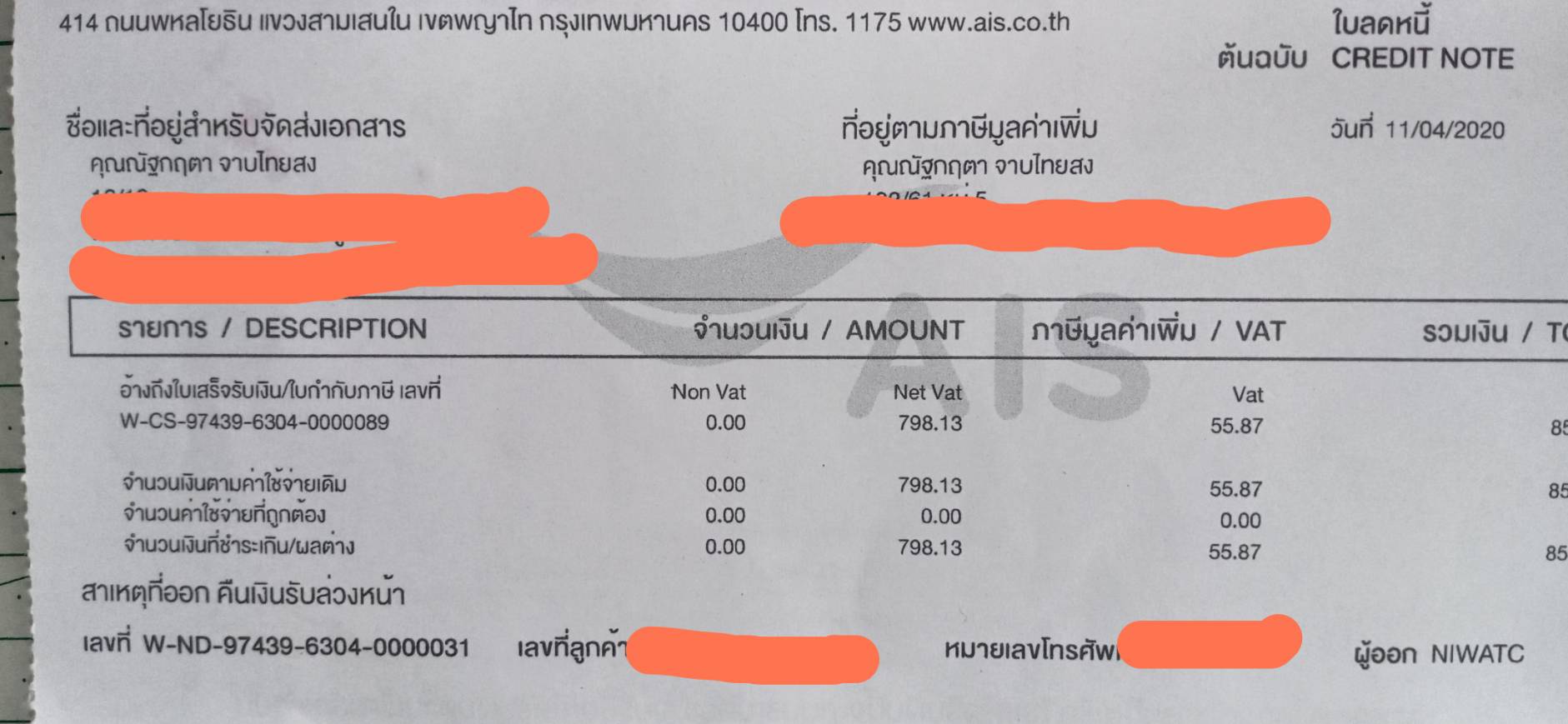 มีใครเจอแบบเรามั้ยคะ เราได้ใบลดหนี้ จาก AIS