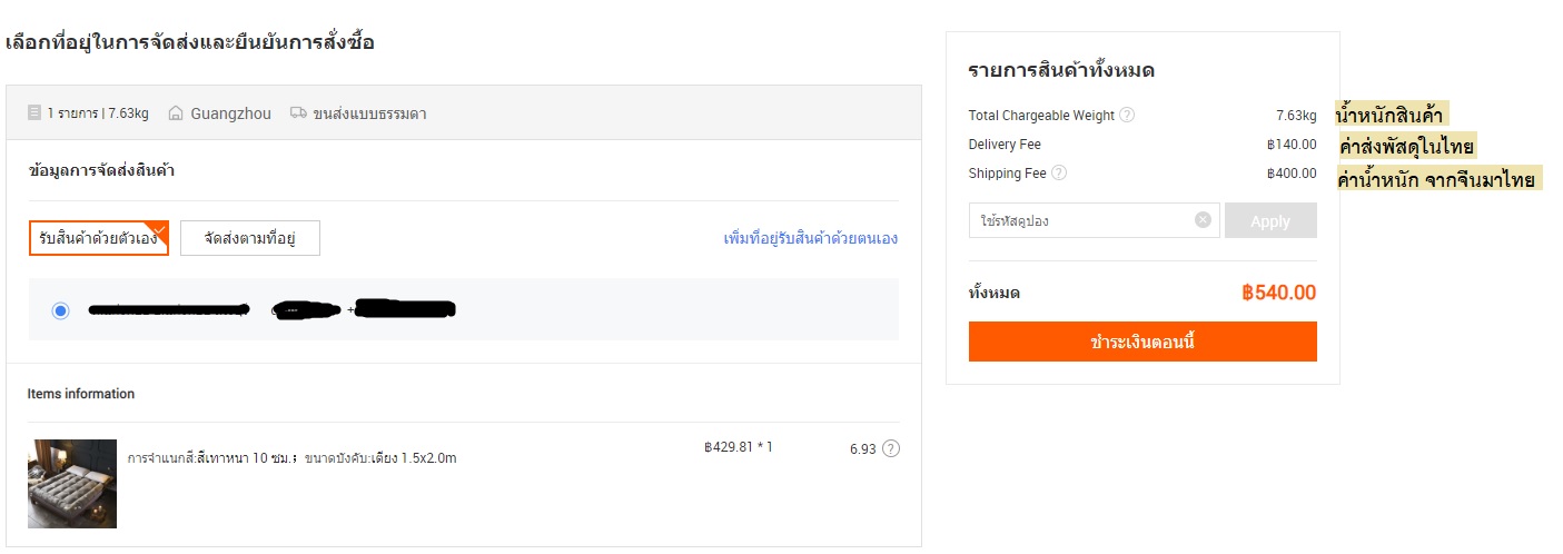 ครั้งที่ 2 รอชั่งน้ำหนัก และ คำนวณ ชำระค่าน้ำหนัก และค่าจัดส่งนประเทศไทย