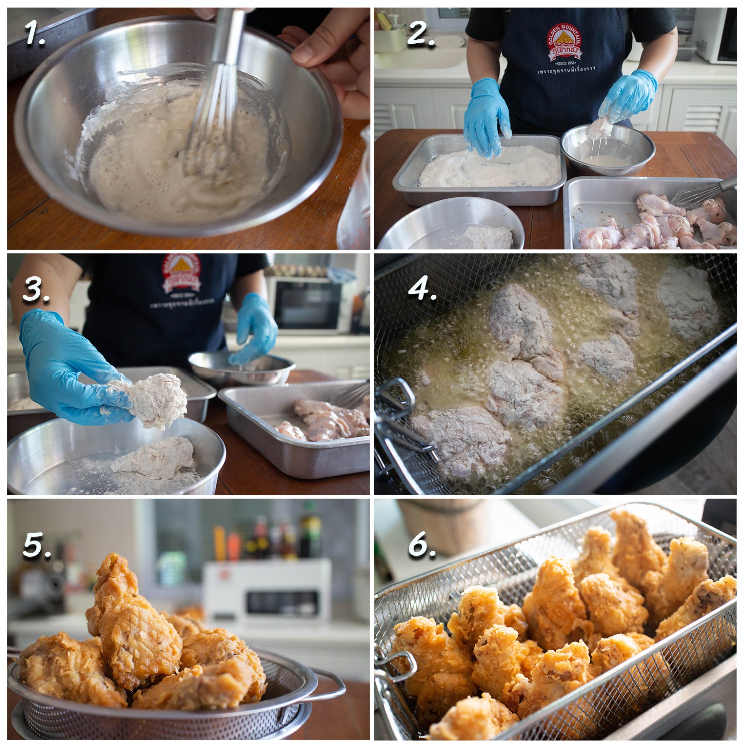 ขั้นตอนที่ 2 - ขั้นตอนการคลุกและทอดไก่