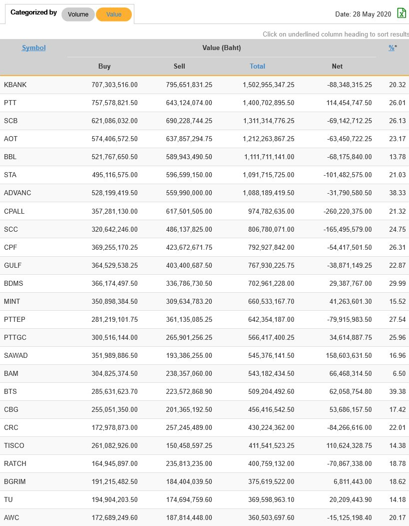 นักลงทุนต่างชาติ NVDR ซื้อ-ขาย มูลค่าสูงสุด 25 อันดับ 28/05/63