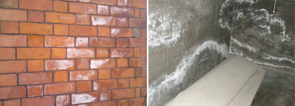 คราบขาวบนผนัง หรือที่ช่างเรียกกันว่าขี้เกลือปูน มักเกิดขึ้นบนพื้นผิวของวัสดุที่มีปูนซีเมนต์เป็นส่วนประกอบ หรือใช้ปูนซีเมนต์เป็นส่วนประกอบในการติดตั้ง เช่น ผนังอิฐแดง ผนังกรุกระเบื้อง ที่ใช้ปูนซีเมนต์ในการก่อ และยาแนว หรือผนังคอนกรีตฉาบปูน ทั้งผิวธรรมดา และผิวขัดมัน รวมถึง ผิวกรวดล้าง ผิวทรายล้าง ผิวกรุหินแกรนิต ซึ่งเมื่อเจอกับความชื้นก็จะไหลออกมา การยาแนวไม่เต็มร่อง หรือการปูกระเบื้องด้วยรูปแบบซาลาเปา พอน้ำระเหยไปก็จะทิ้งคราบขาวเอาไว้บนผิวผนัง พูดง่าย ๆ ก็คือปัญหาคราบขาวเนี่ย เกิดจากความชื้น และการก่อสร้างที่ไม่สมบูรณ์นั่นเองล่ะครับ