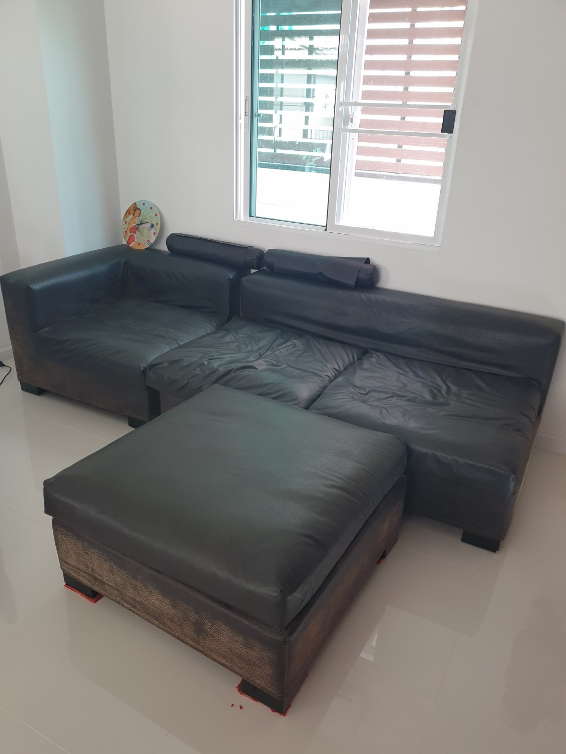 โซฟาหนัง มีรอยตามภาพค่ะ แต่ไม่ขาดนะคะ พอดีจะขาย ไม่ทราบว่าพอจะมีวิธีทำความสะอาดมั้ยคะ น่าจะเกิดจากการเก่าเก็บอ่ะค่ะ