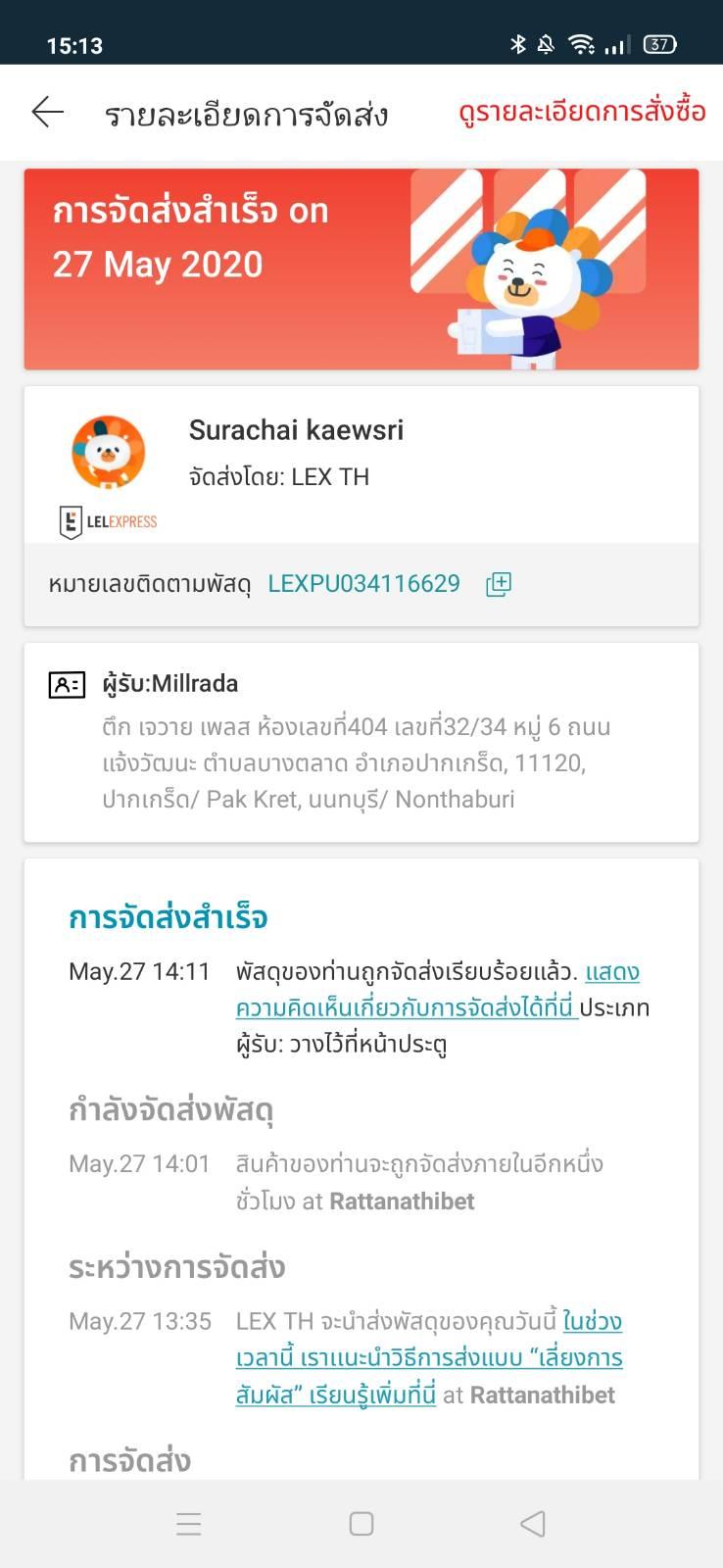 Lex TH ไม่ส่งของ ติดตามสถานะพัสดุไม่ได้