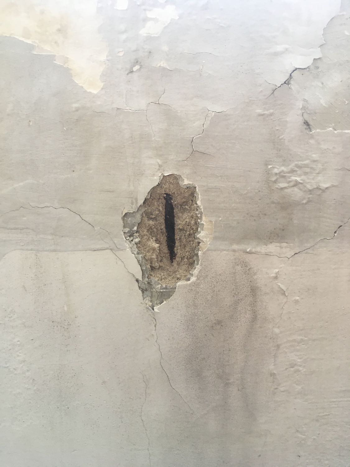 บ้านเป็นบ้านปูนสี่ชั้น สร้างปี 2552 มีปัญหาน้ำซึมผนัง เนื่องจากข้างบ้านสร้างตึกพร้อมกัน แล้วก่อกำแพงก่อน ทำให้เราไม่สามารถฉาบผนังภายนอกได้ แต่ก็ไม่แน่ใจว่า เป็นเหตุที่ทำให้เกิดรอยร้าวหรือไม่ รอยราวมีบ