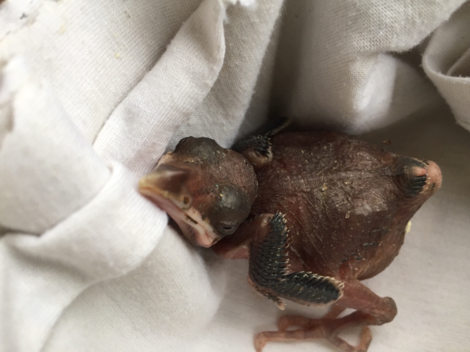 สวัสดีค่ะ ที่บ้านฝนตกหนัก เช้ามา มีลูกนกตกอยู่ที่หลังบ้าน