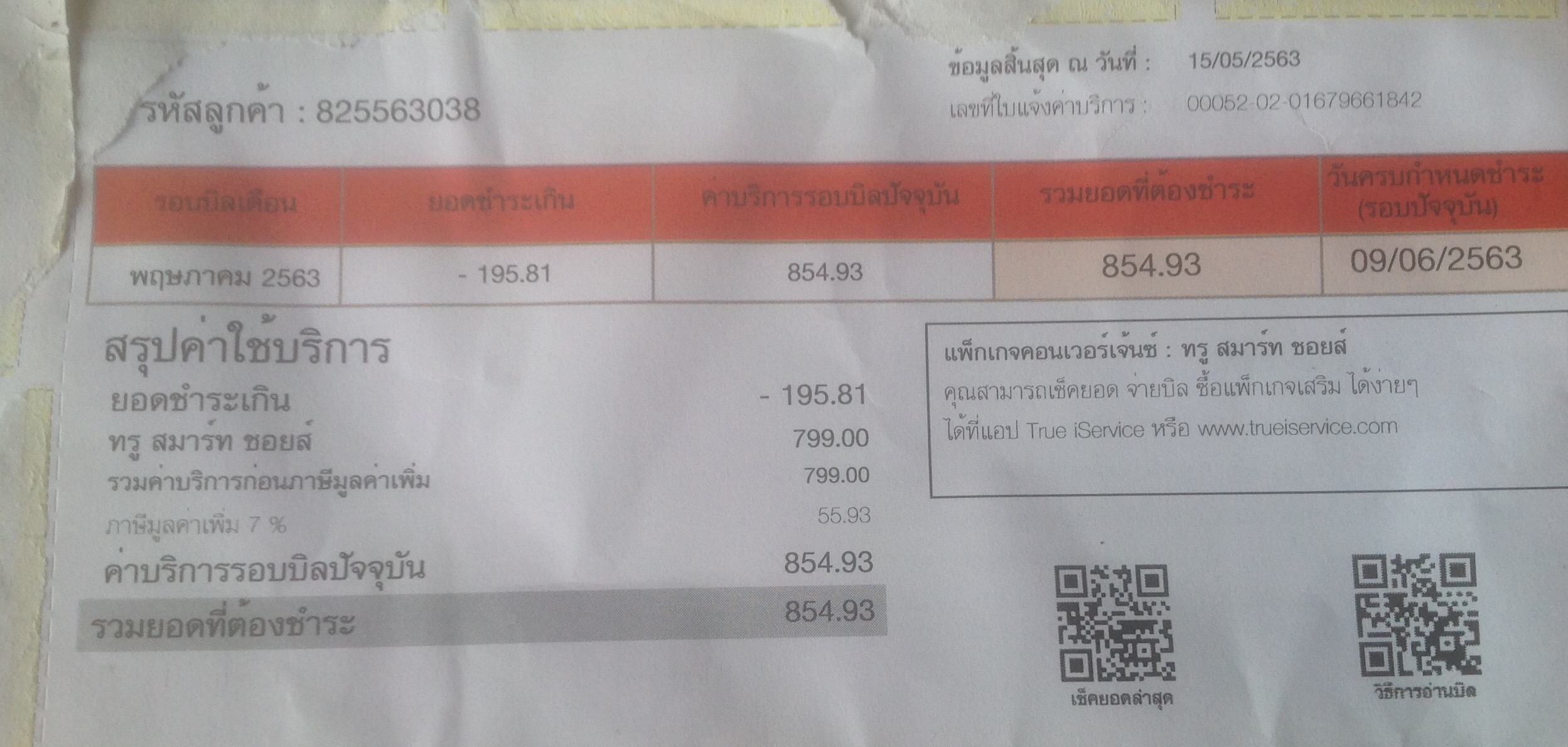 เวลาผ่านไป ทรูมูฟเอชคงตรวจพบว่าเรียกเก็บผิด เลยมียอดเดือนต่อมาว่าเราชำระเกิน195บาทกว่าตามบิลแหละ