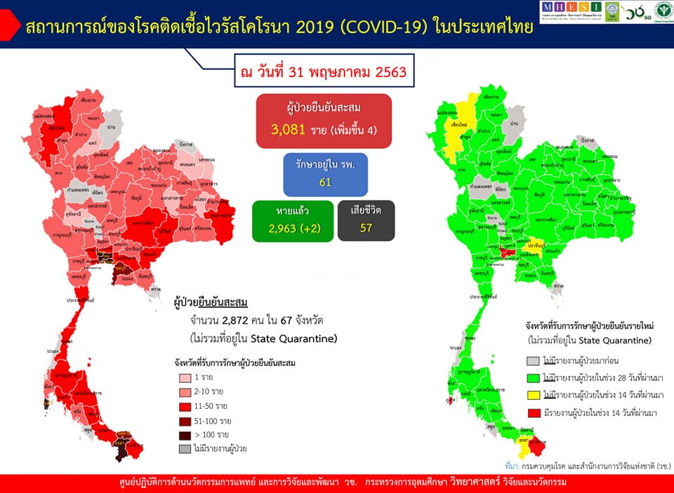ผู้ติดเชื้อสะสม 3,081 ราย ใน 68 จังหวัด (เพิ่มขึ้น 4 ราย)