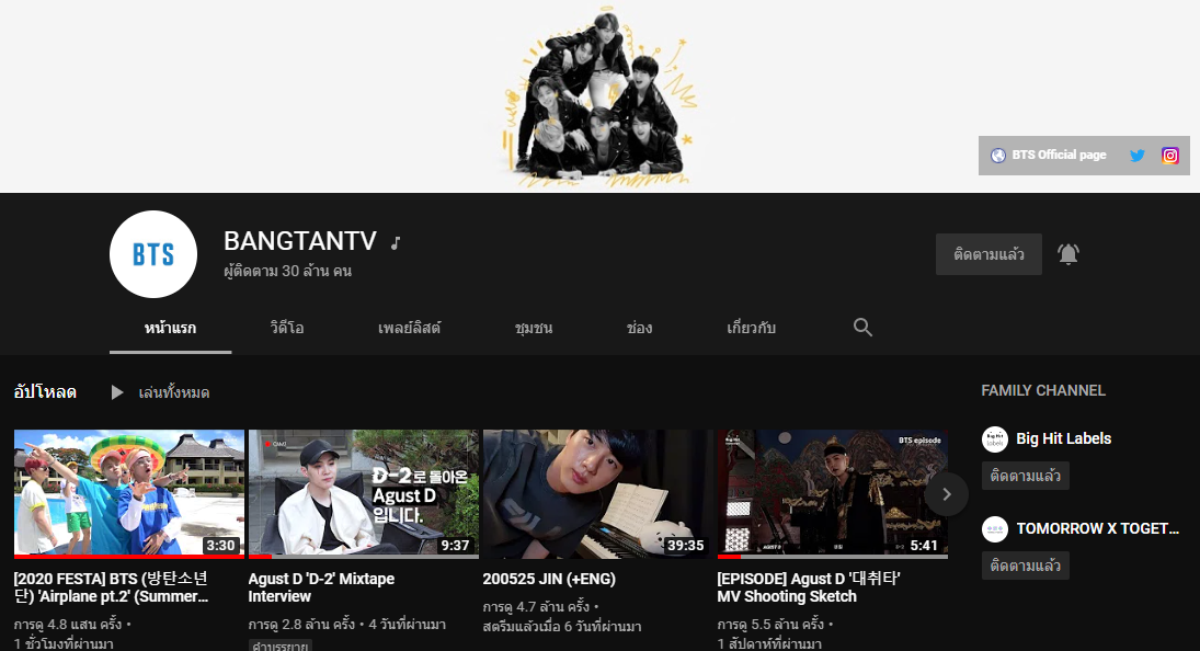 BANGTANTV มียอดผู้ติดตาม30ล้านซับเเล้ว