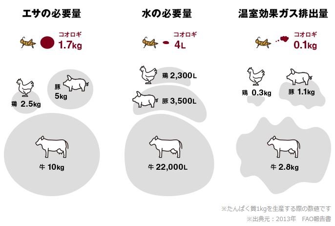 ทำไมการกินแมลงจึงเป็นเรื่องดี แล้วอาหารที่เรากินอยู่ในปัจจุบันมันไม่ดีตรงไหน มูจิได้บอกว่า ในปี 2050 ประชากรโลกจะมีจำนวนถึง 1 หมื่นล้านคน และในการเจริญเติบโตของประชากรเราต้องการแหล่งโปรตีนที่พึ่งพาได้ ซึ่งเมื่อดูจากปริมาณของโปรตีนในจิ้งหรีดแล้ว มีมากกว่าเนื้อเสต็ก หรือสะโพกไก่ถึง 3 เท่า แต่ใช้ทรัพยากรน้อยกว่ามาก