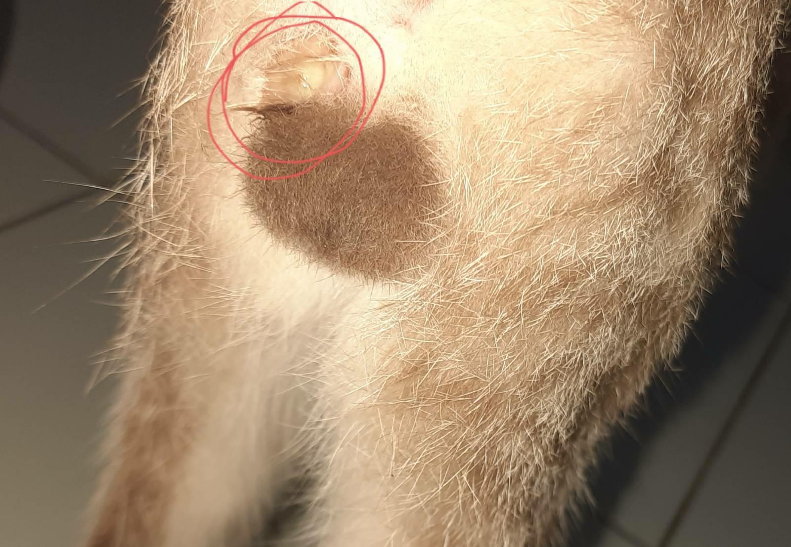 คือเราไม่รู้ว่าน้องไปโดนอะไรมาค่ะ น้องเป็นแมวไม่มีเจ้าของเราเลยให้ข้าวให้น้ำ วันนี้ตอนน้องเดินสังเกตเห็นว่ามันมีอะไรแปลกๆต้องใกล้อัณฑะเป็นวงกลมๆขาวๆตามรูปค่ะ(อาจไม่ค่อยชัดเพราะน้องไม่อยู่นิ่งๆเลยค่ะ)ใครรู้บอกที่ว่าน้องเป็นอะไร แล้วสามารถหายเองได้ไหม แล้วมันเป็นอันตรายหรือเปล่าค่ะ คือเราไม่สะดวกพาไปโรงบาล