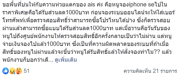 ขอพื้นที่บ่นให้กับความห่วยแตกของ ais ค่ะ คือหนูจองiphone seไปในราคาพิเศษคือได้รับส่วนลด1000บาท