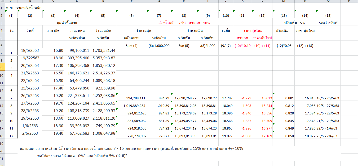 MINT : Update ถ่วงน้ำหนักราคาในกระดานเฉลี่ย 7 วัน และ 15 วัน สิ้นสุด 8/6/2563