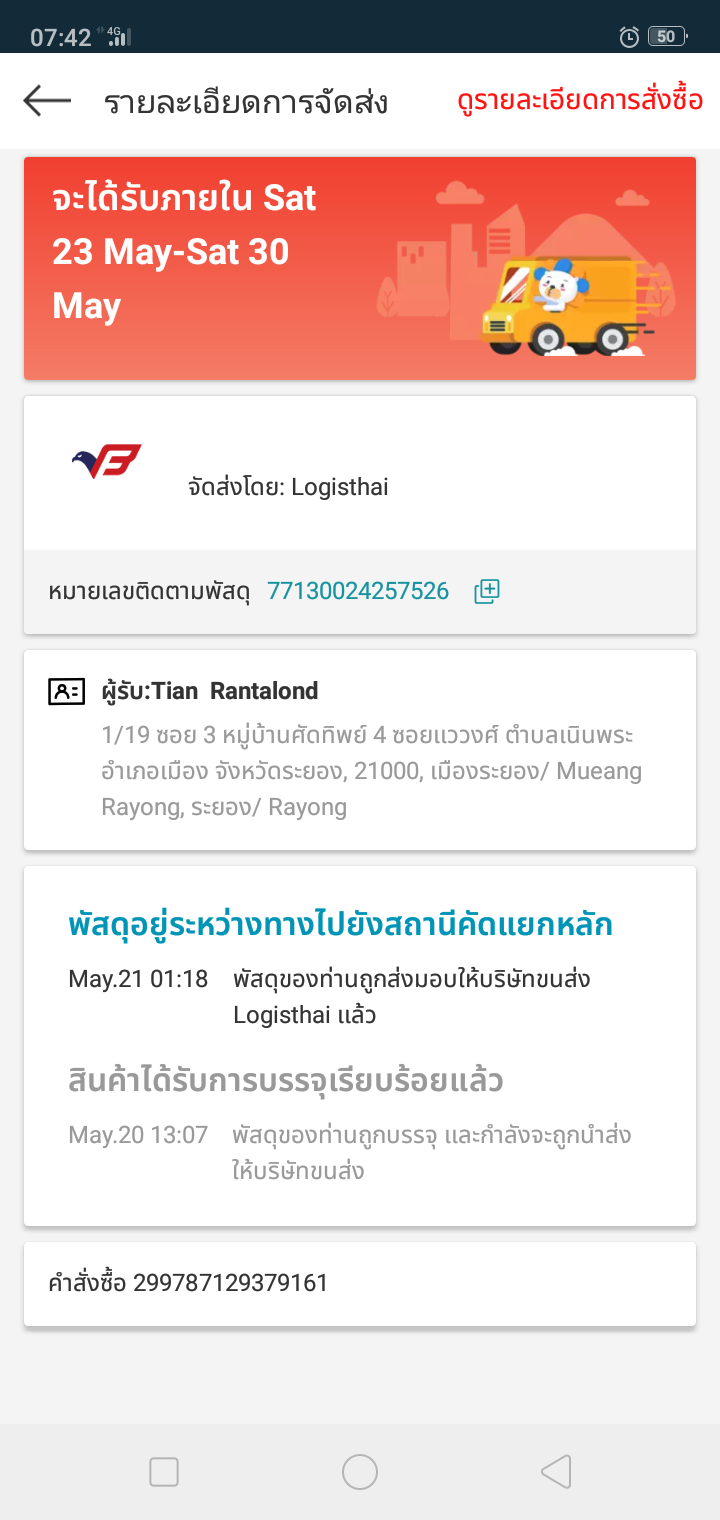 ขนส่ง logisthai ของ lazada ช้ามั้ย
