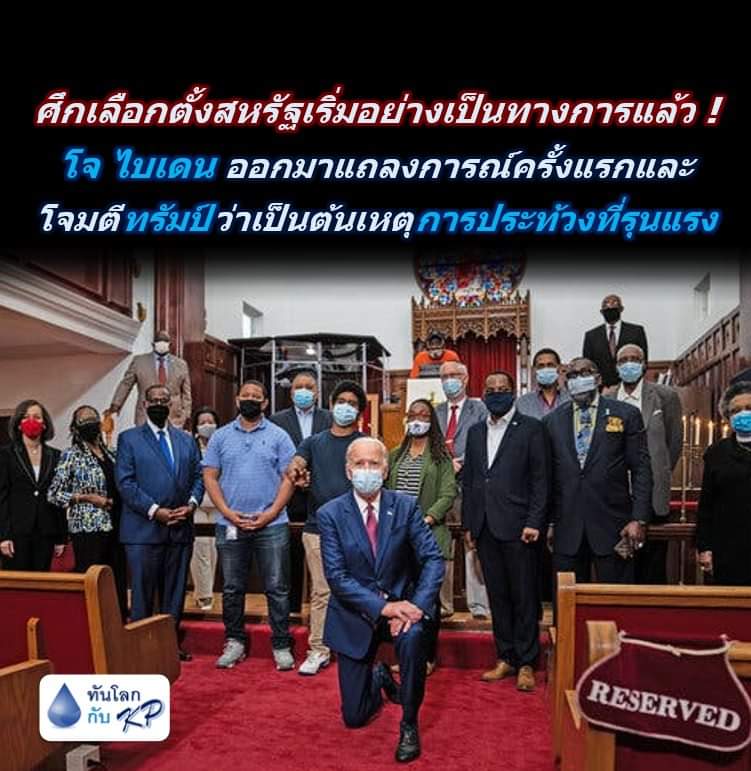 🇺🇸 #ศึกเลือกตั้งสหรัฐเริ่มอย่างเป็นทางการแล้ว ! โจ ไบเดน ออกมาแถลงการณ์ครั้งแรกนับตั้งแต่เกิดเหตุไวรัสโควิดระบาดและโจมตีทรัมป์ว่าเป็นต้นเหตุของการประท้วงที่รุนแรงในสหรัฐ !