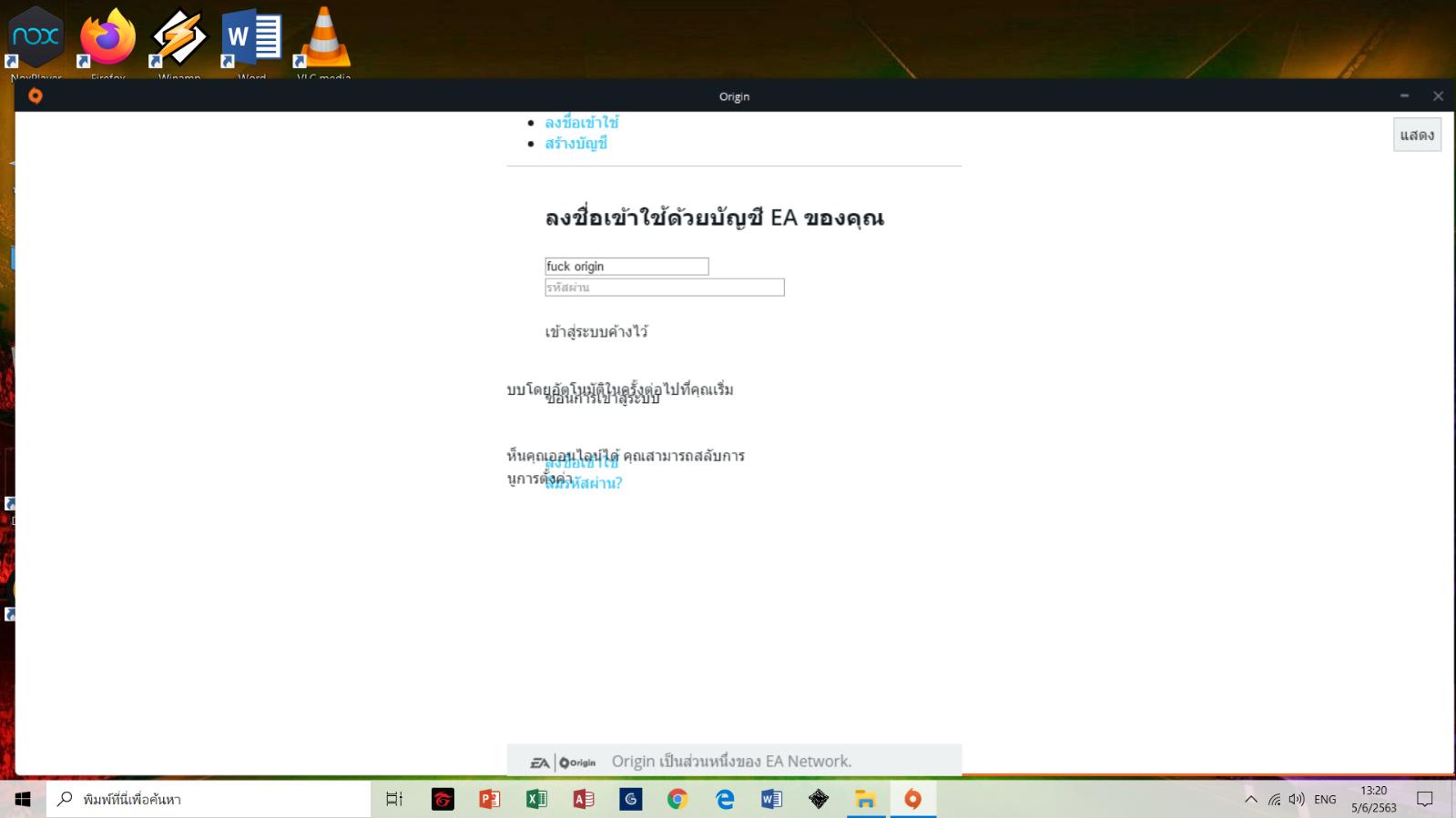 ขอถามหน่อยครับ Originผมlog inไม่ได้ครับ เป็นแบบนี้