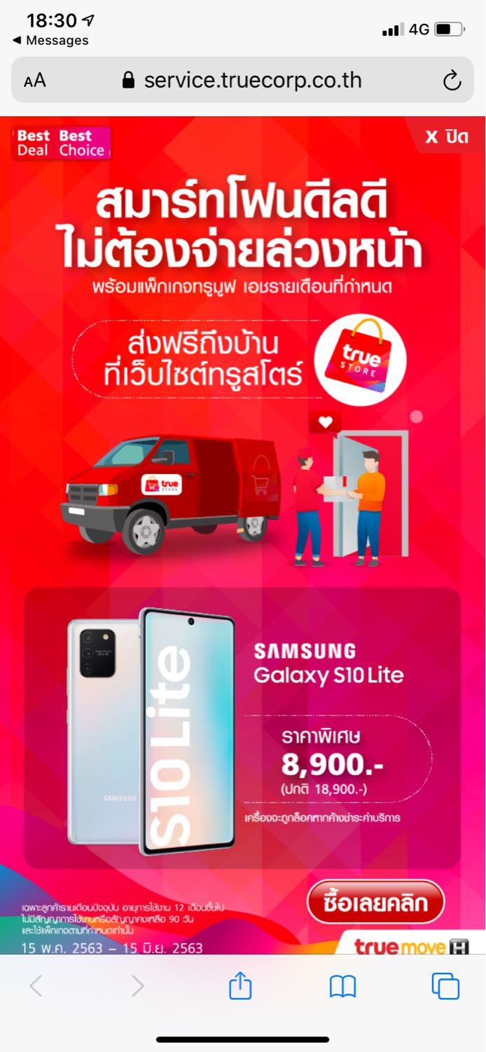 ใช้ iPhone อยู่ครับ เวลาเข้าเว็บใน safari มันจะเด้งไปที่โฆษณาทรูก่อน ตามภาพเลย ต้องกดปิดทุกครั้งน่ารำคาญมากครับ ไม่ทราบว่าปิดได้จากตรงไหนครับ