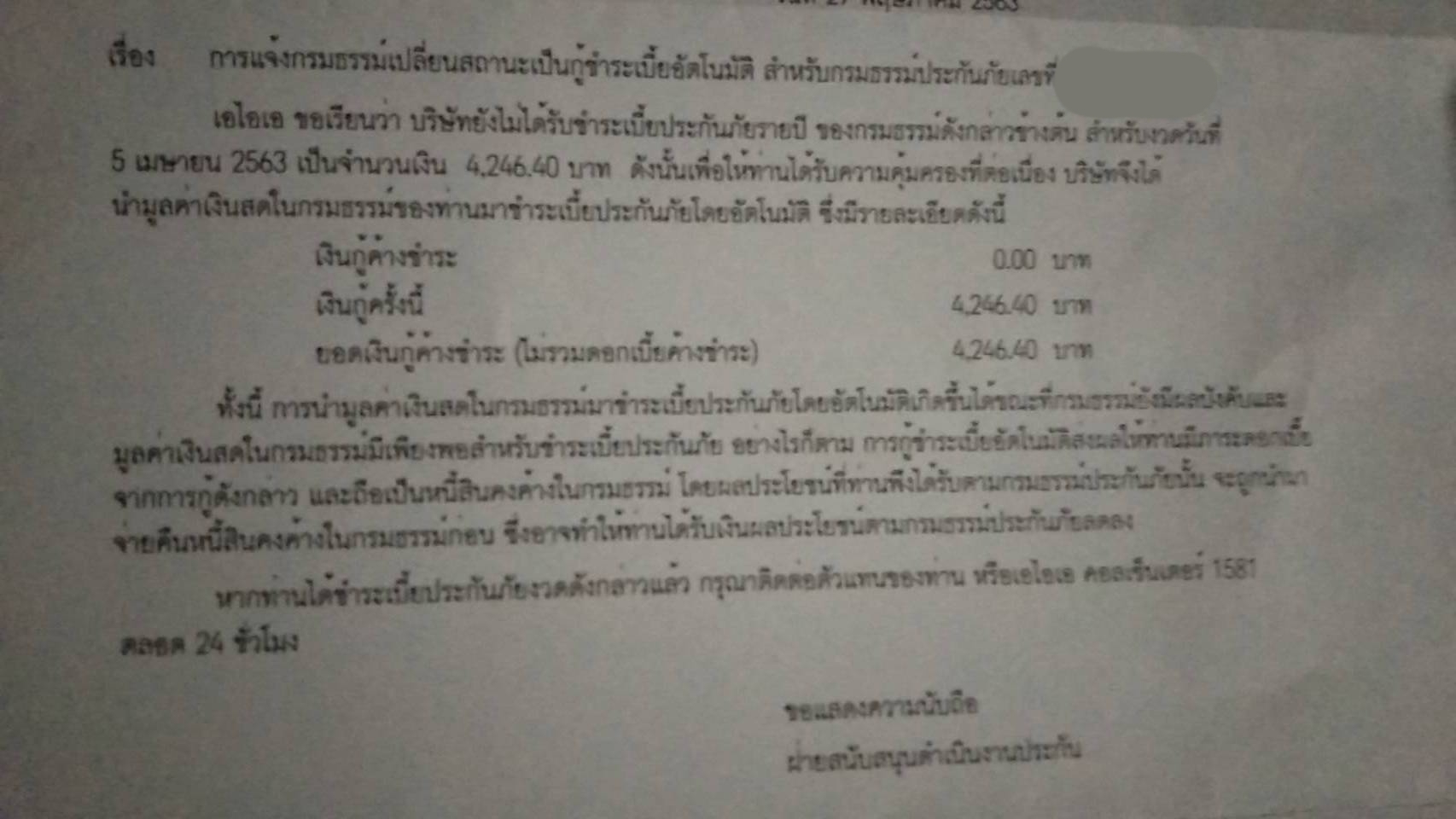 ประกัน AIA กู้อัติโนมัติ ทั้งๆที่ยกเลิกไปแล้ว