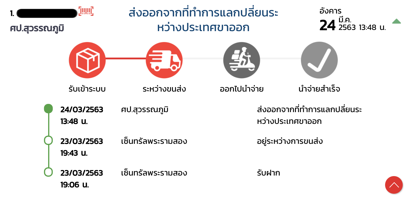 เช็คเลขพัสดุขึ้นว่า พัสดุของท่านกำลังถูกจัดส่งอีกครั้ง