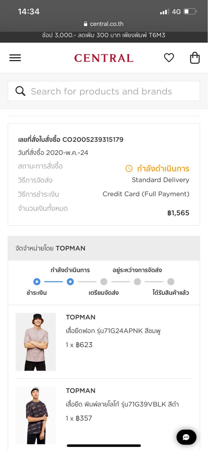 ผมได้ทำการสั่งเสื้อยี่ห้อ Topman จาก Central online เมื่อวันที่ 24 พค. เวลาประมาณ 1.00 เนื่องจากตอนนั้นมี โปรโมชั่นครับ จน ณ ปัจจุบันวันนี้ของยังไม่ได้ทำการจัดส่ง และยังขึ้นสถานะว่าเตรียมดำเนินการอยู่... จะเล่าอย่างละเอียดตาม timeline นะครับ