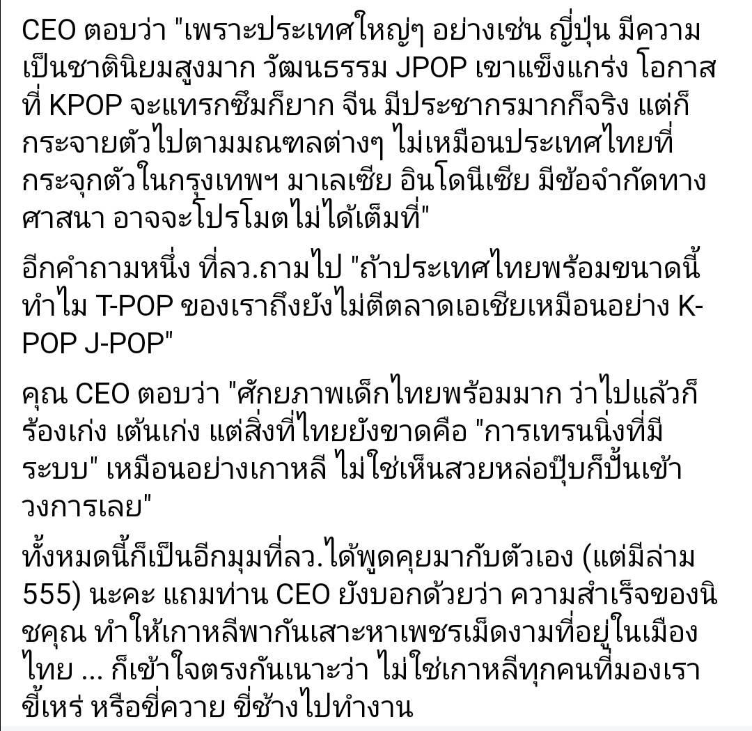 คิดว่าทำไมค่ายเพลงในเกาหลีส่วนใหญ่ถึงเอาแต่ คนไทย จีน ญี่ปุ่น เป็นศิลปิน