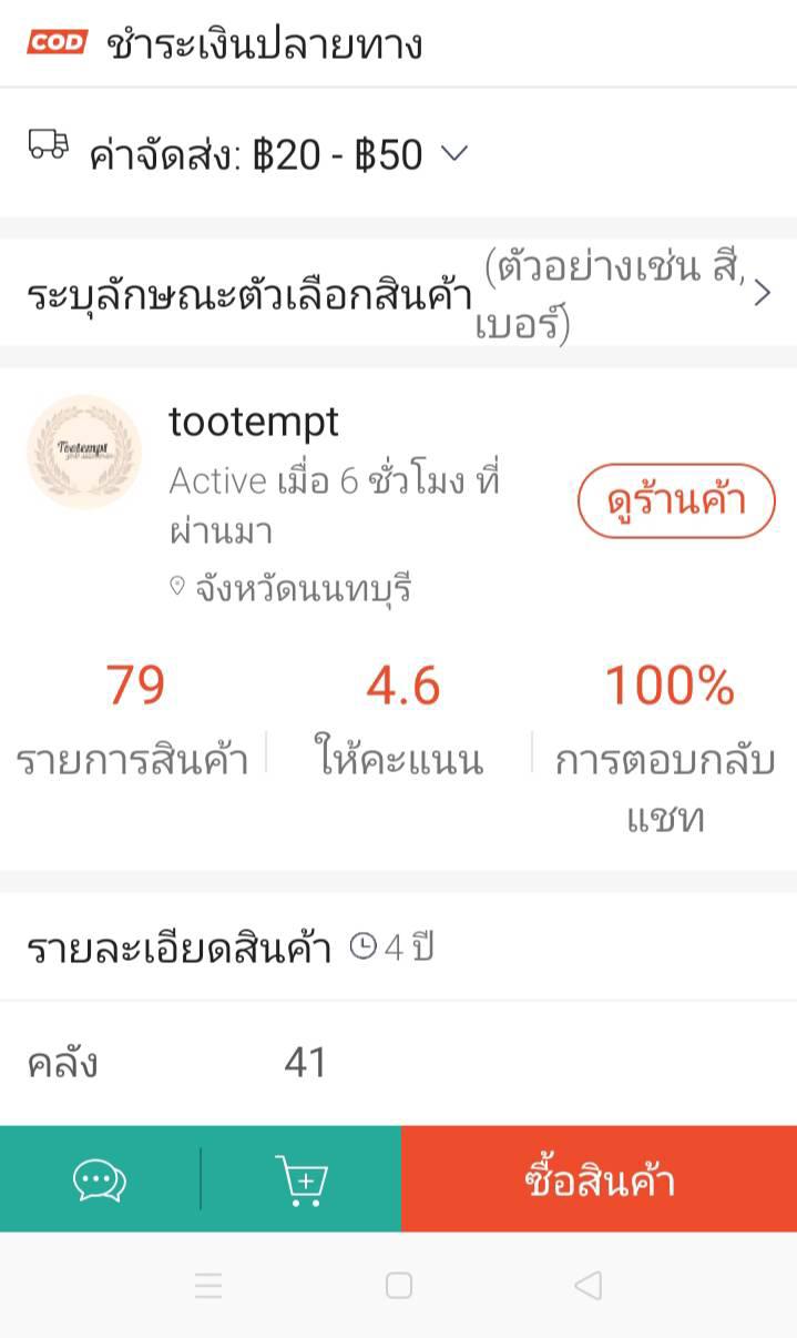 สวัสดีค่ะพอดีพึ่งโหลดแอป shopee มาค่ะแล้วไปเจอร้านนึงที่ถูกใจ มีเขียนบอกว่า"มีชำระเงินปลายทาง"