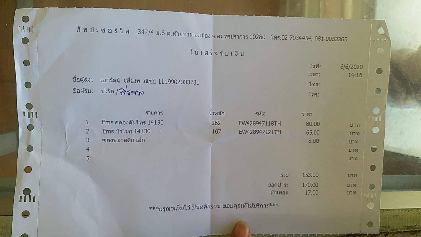 คือเราสั่งของออนไลน์มาอย่างหนึ่งแล้วร้านก็ส่งของให้ตอนบ่ายพร้อมแจ้งเลขพัสดุตามภาพแล้วทีนี้เราก้เลยลองเอาไปเช็คในเว็บไปรษณีย์แต่มันขึ้นว่าไม่พบข้อมูลเราเช็คหลายรอบมากตอนแรกก้เข้าใจว่าอาจติดวันอยุดเสาร์อาทิตย์แต่พอมาวันนี้วันจันทร์ก็ยังขึ้นไม่พบข้อมูลของเลย...😂😂ใครรู้ว่าต้องทำไงช่วยตอบหน่อยนะครับ