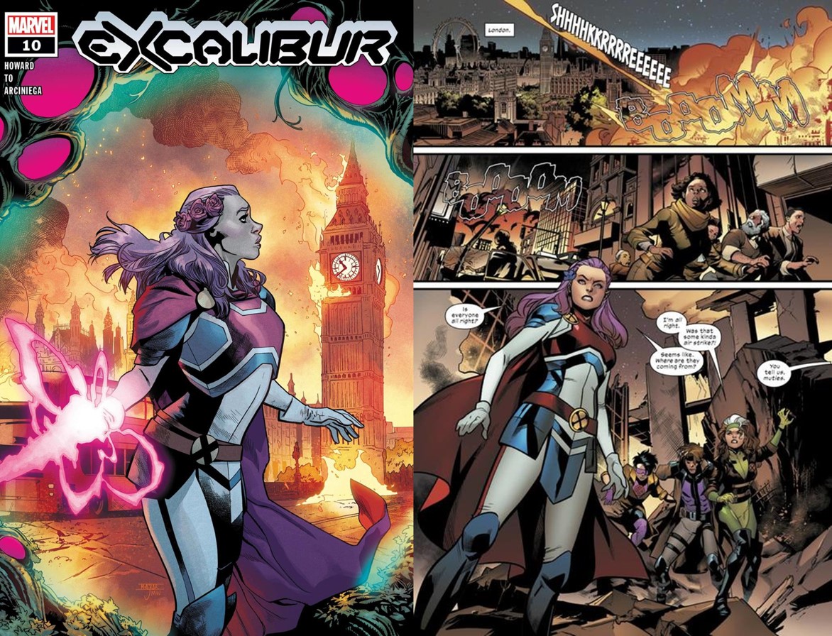 Excalibur #10 ลอนดอนโดนอะไรบางอย่างโจมตี ทีมเอ็กซ์คาลิเบอร์ที่เพิ่งเสร็จธุระจากอาเธอร์เวิลด์มาถึงแบบงง ๆ ปรากฏว่าประตูมิติคราคัวถูกทำลาย ฝีมือพวกเกลียดมิวแตนท์อย่างนั้นหรือ
