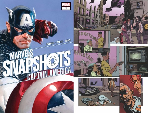 Marvels Snapshots: Captain America วายร้ายคนนึงใช้ไอเท็มปล่อยคลื่นสะกดจิตผู้คนให้คลุ้มคลั่งอาละวาด สตีฟกับฟาลค่อนรีบรุดมาปราบจลาจล สตีฟเกือบคลุ้มคลั่งไปด้วยแล้ว แต่ก็เล่นงานไอเท็มที่ว่าได้ทันเฉียดฉิว
