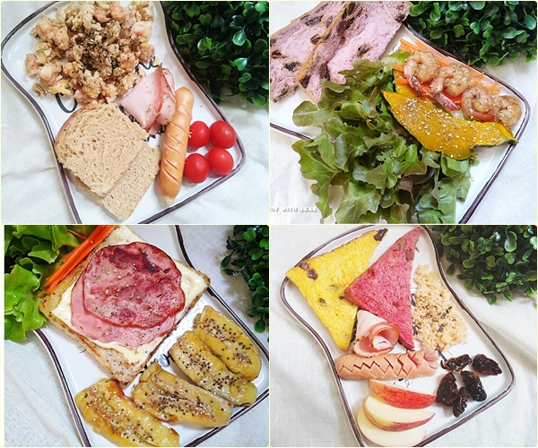 อันนี้เป็นเซทอาหารเช้า หน้าตาจะประมาณนี้ ส่วนใหญ่เน้นเร็ว ง่าย เพราะเช้าๆ จะหิว จะมีขนมปังเป็นหลักขาดไม่ได้ แล้วก็เพิ่มโปรตีนเป็นไส้กรอก แฮม ไข่ แล้วแต่วัน เวลาทำก็แค่เอาไปปิ้งๆ ย่างๆ ในกระทะ โรยเกลือพริกไทย งาขาว นิดหน่อยตามชอบ แต่จริงๆ นอกเฟรมเราก็มีกินนมกับกลาโนล่าด้วยจ๊ะ ^^