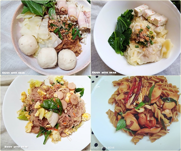 มาต่อที่เมนูเส้นบ้าง มีตั้งแต่ก๋วยเตี๋ยว เกี๊ยว ผัดซีอิ๊ว พาสต้า มาครบเล้ยจ้า