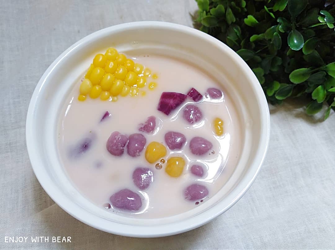 ของหวานง่ายๆ อย่างบัวลอยก็มีน้าาาา จะบอกว่าทำเองแบบนี้ดีตรงที่เราใส่แป้งน้อย ใช้พวกมันม่วงกับฟักทองผสมกับแป้งไปเลย น้ำกะทิก็ใส่น้ำตาลน้อย ทำให้ดีต่อสุขภาพด้วยนะ เราใช้ชุดรวมขอนึ่งจากเซเว่น กระทิกล่อง แป้งก็หาได้ เซเว่นมี