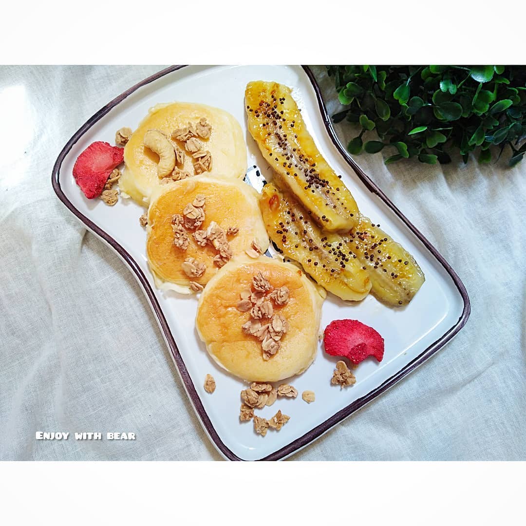 เมนูแพนเค้กก็มา อร่อยมากๆ กินคู่กับกล้วยย่างแบบนี้คืออร่อยสุดอ่ะ ใช้แป้งสำเร็จรูปนี่แหละ สะดวกสุด