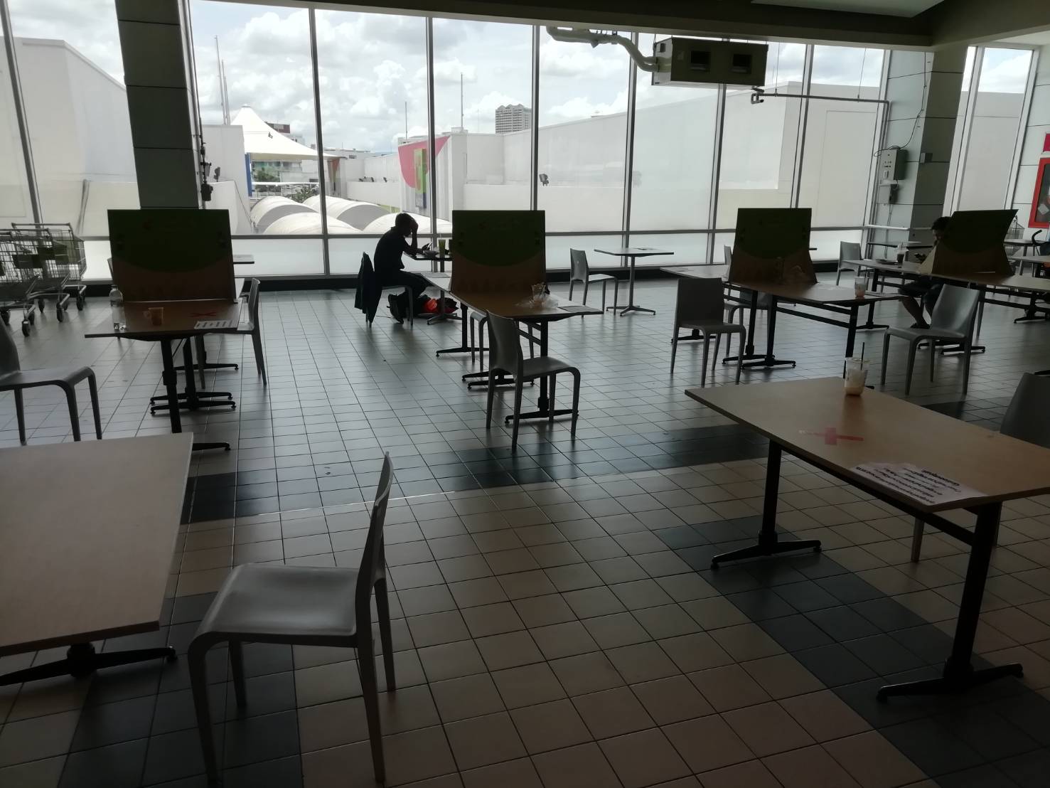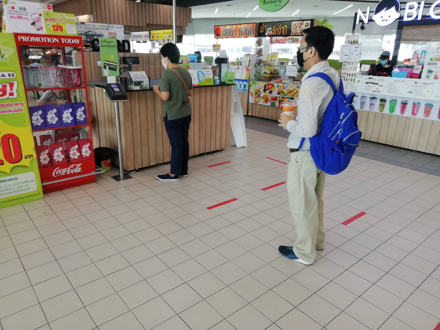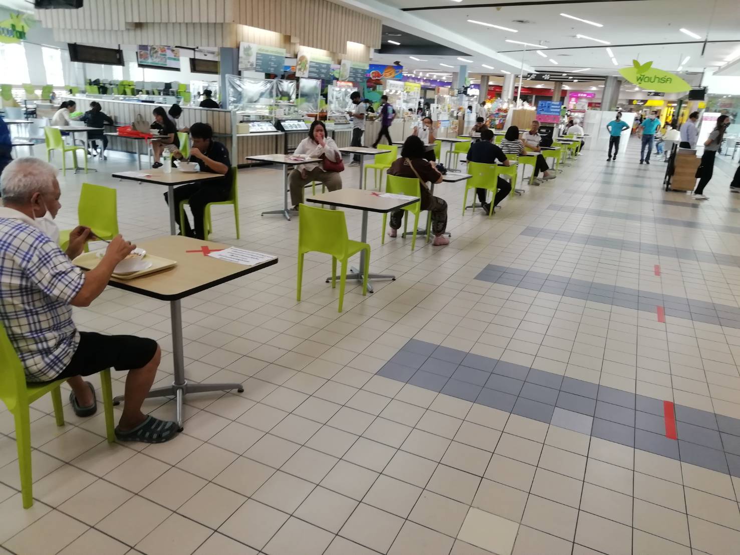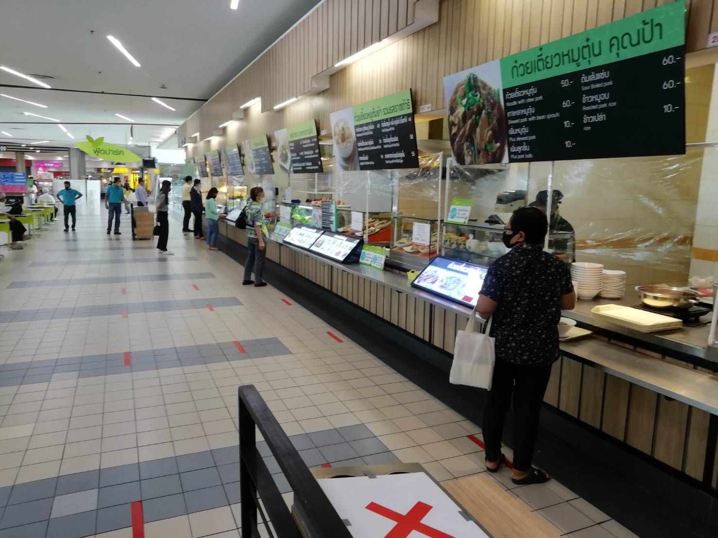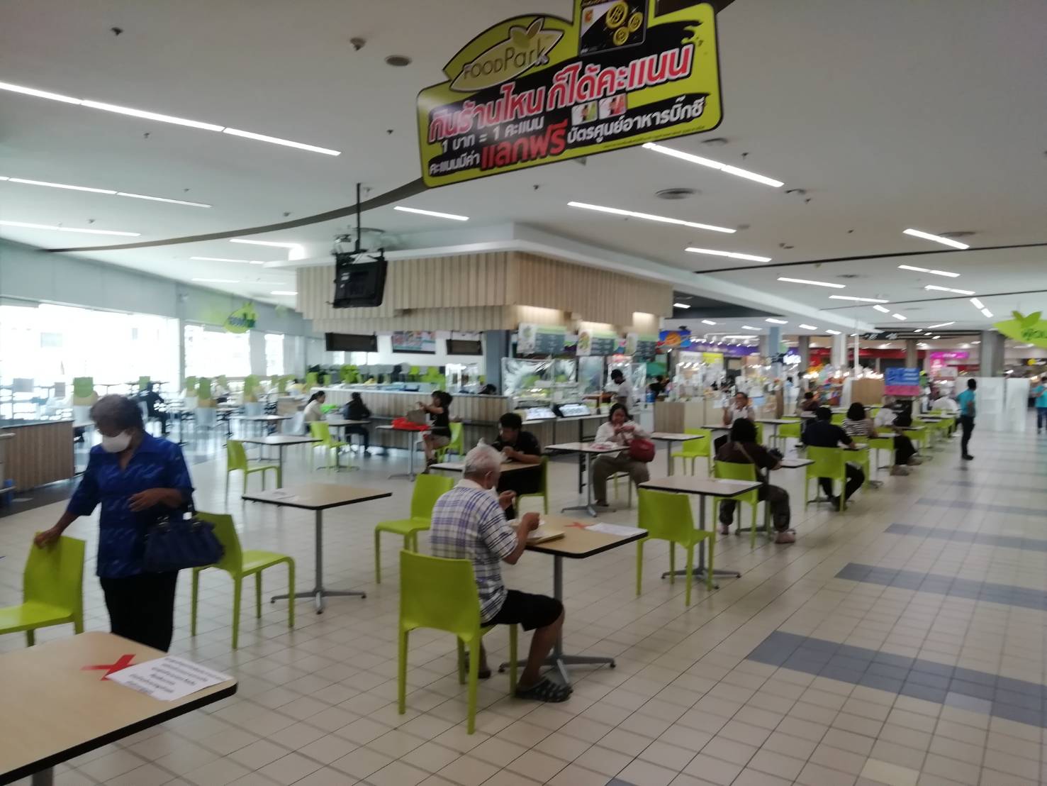 ไปฟู้ดคอร์ทบิ๊กซีเอ็กซ์ตร้าลาดพร้าว รักษาระยะห่าง ตั้งโต๊ะห่างๆมีเก้าอี้ตัวเดียวต่อโต๊ะ