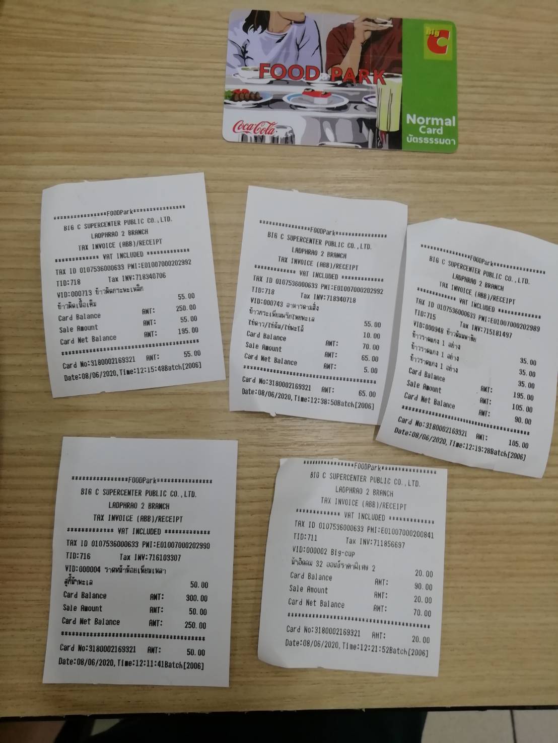 แลกบัตรคูปอง 300.- เหลือ 5.- ซื้อขนมเงินสด 60.- จ่ายไปทั้งหมด 355.-