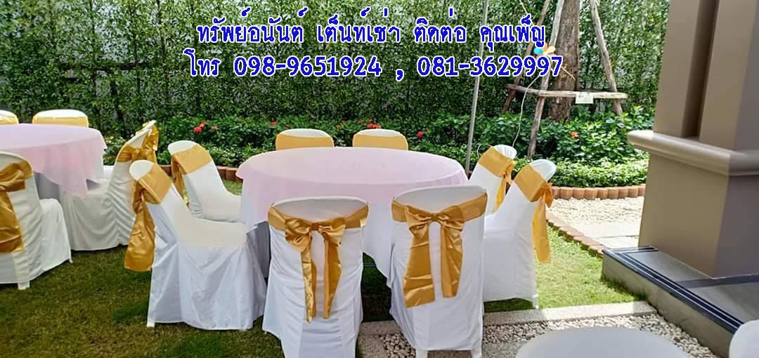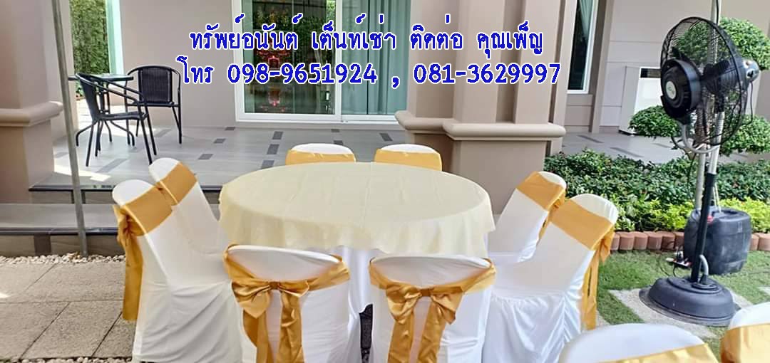 ทรัพย์อนันต์ เต็นท์เช่า จำหน่ายและให้เช่าเต็นท์ราคาถูก เต็นท์โค้ง,เต็นท์โรมัน,เต็นท์ปิระมิด,โต๊ะเก้าอี้ พร้อมผ้าคลุม แล้วผูกโบว์ทอง,ชุดอุปกรณ์ พิธีสงฆ์ โต๊ะหมู่บูชา อาสนะพระ, พัดลม ให้เช่าในราคากันเอง และ รับเหมาจัดงาน งานพิธี อีเวนท์ งานประชุมสัมนา จัดแสดงสินค้า แสง สีเสียง งานมงคลทุกประเภท ครบวงจร