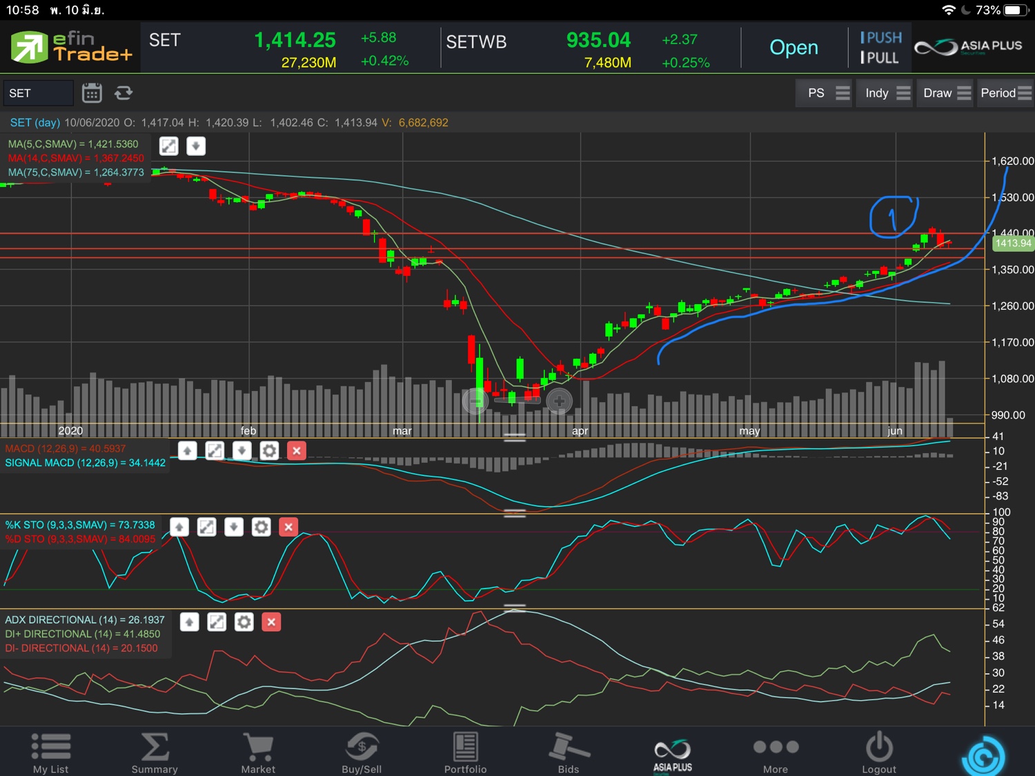 แน่นอนมาถึงแล้วก็ต้องเล่นตามแผน เดาว่าอาจมีเด้งไปแตะแถวๆ 1400 สร้างแนวต้าน 1400 อีก 1 อัน หลังที่ผ่านมาทำแนวต้านตลอดทาง 1440 1420 อยากจะบอกแนวต้านเยอะมากกกกกกก ไม่ง่ายเลยที่จะผ่านขึ้นไปได้ จำเป็นต้องล