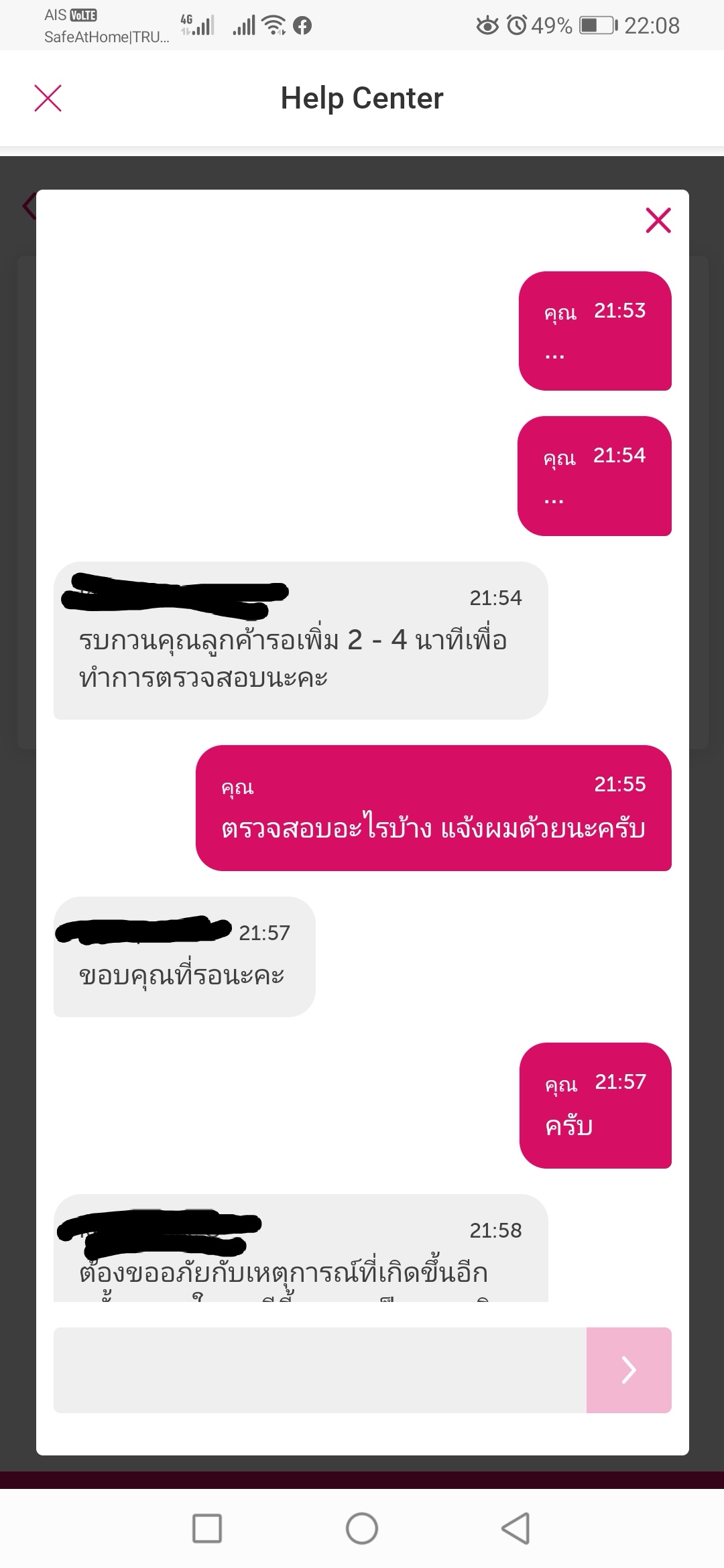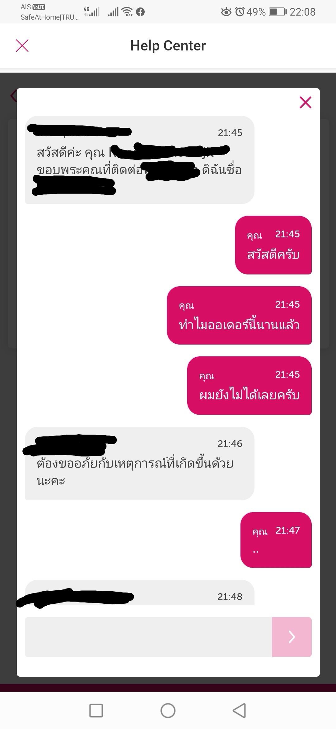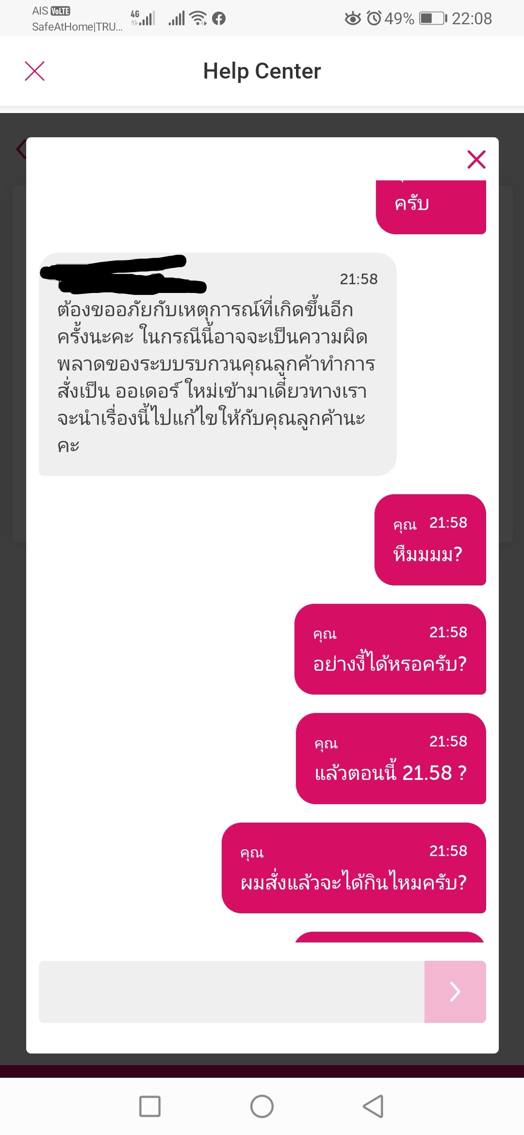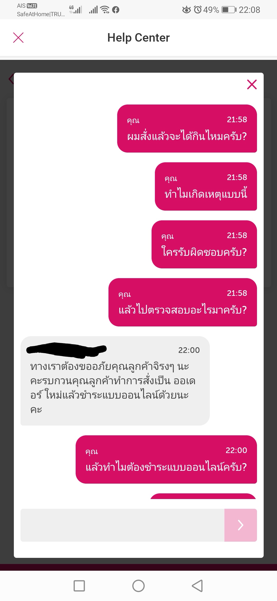 รีวิวการแชทกับคอลเซนเตอร์ของบริษัทเกี่ยวกับการขนส่งอาหาร ครับ