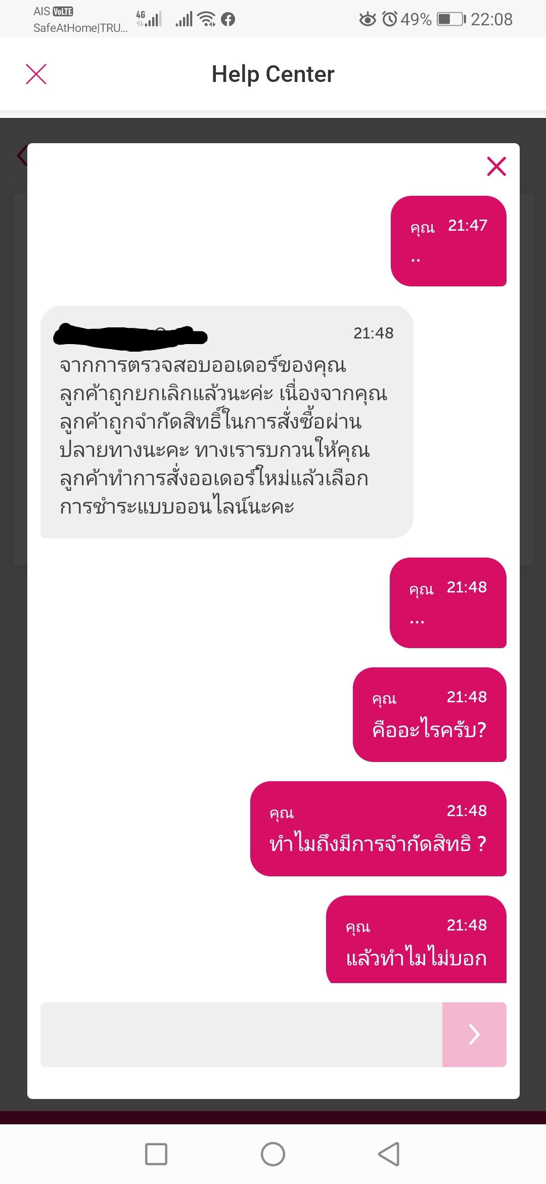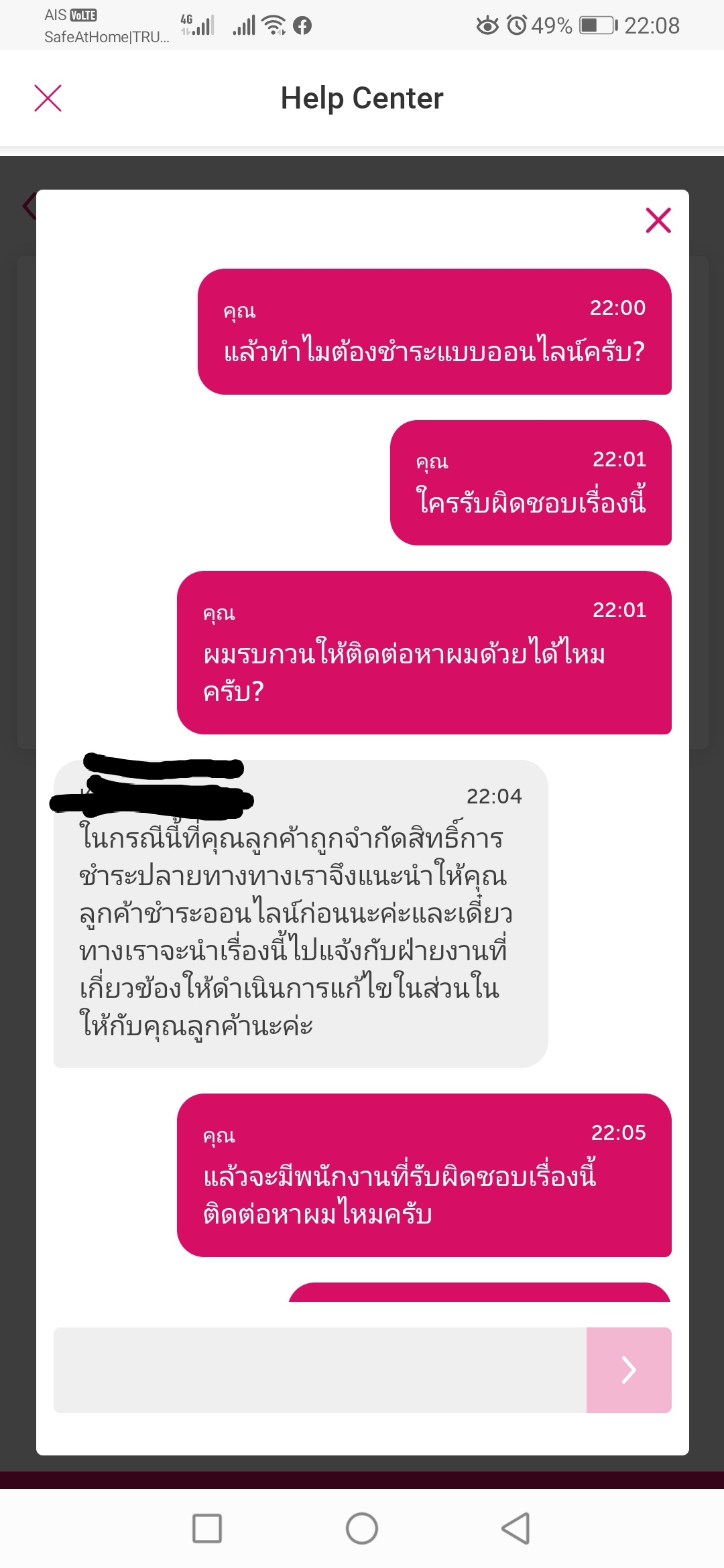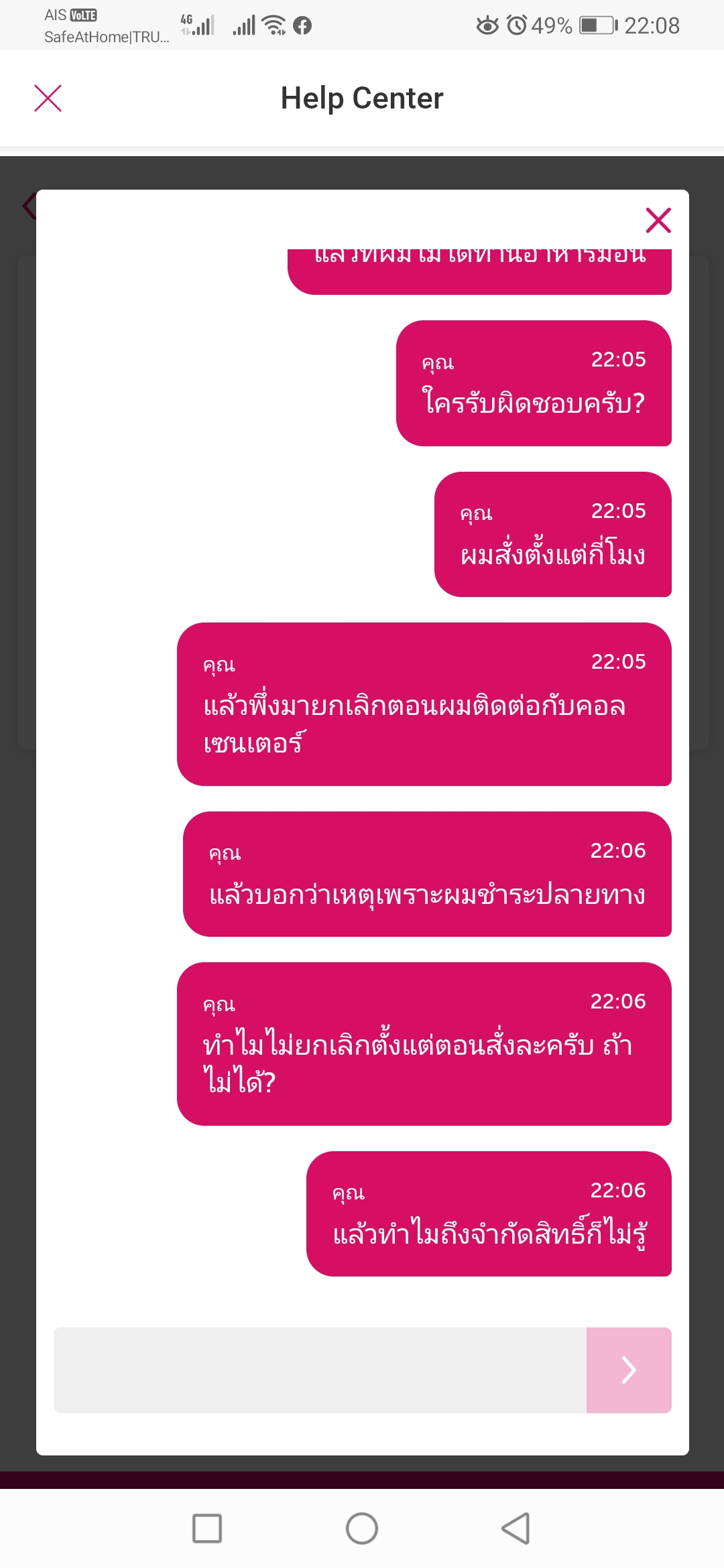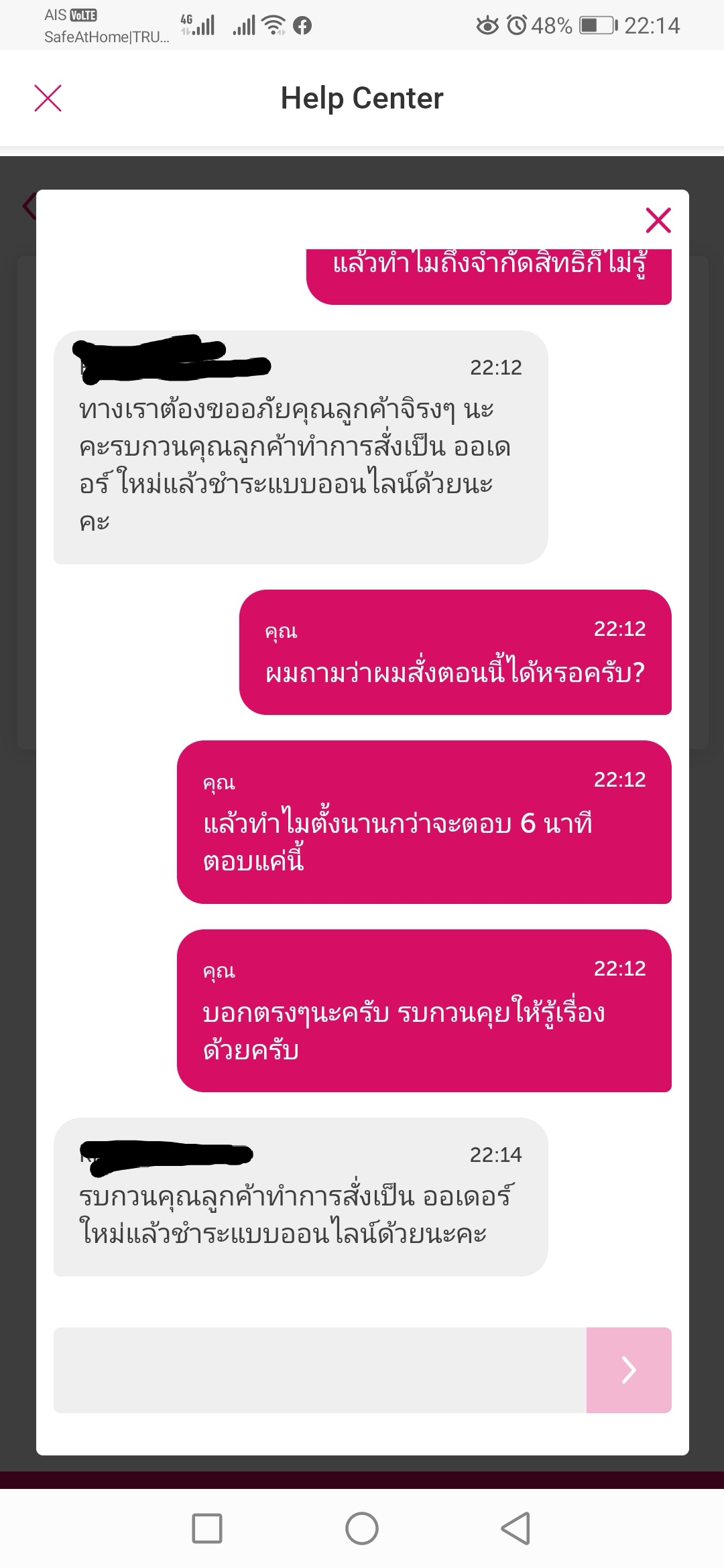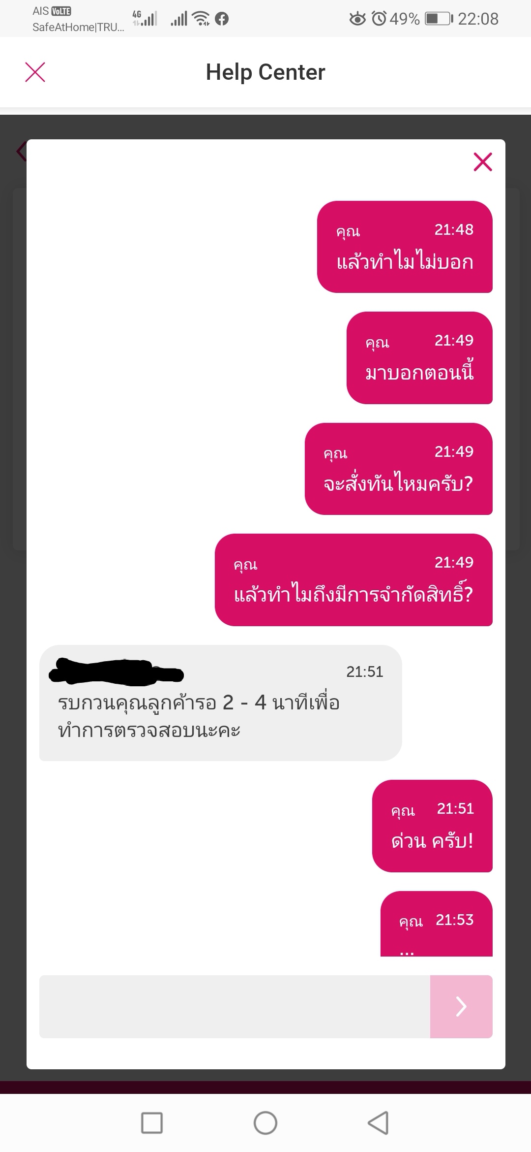 รีวิวการแชทกับคอลเซนเตอร์ของบริษัทเกี่ยวกับการขนส่งอาหาร ครับ
