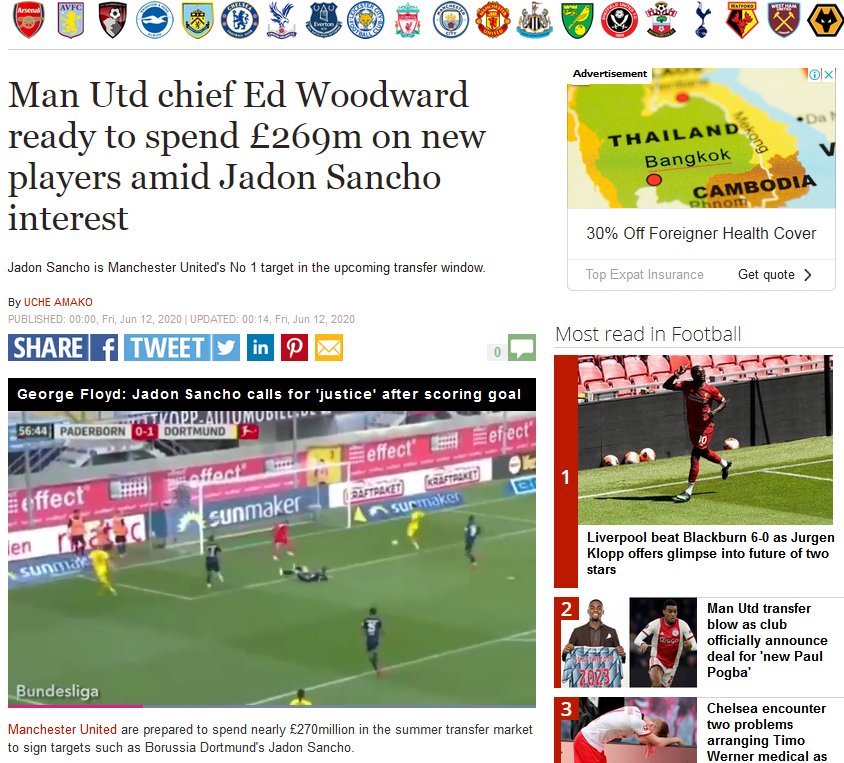 รายงานข่าวล่าสุด ลอร์อดเอ็ด หรือป๋าเอ็ด ของเด็กผีได้โชว์รวยเตรียมเงินให้ โอเล่ กุนน่าร์ โชลชา เสริมทีมฤดูกาลหน้าให้ทีมอื่นอิจฉาเล่นๆ ด้วยงบถึง 300 ล้านยูโร โดยเป้าหมายอันดับหนึ่งที่จะล่าตัวมาให้ได้คือ Jadon Sancho ดาวรุ่งพุ่งแรงมาวาดลวดลายในโรงละครให้ได้ คาดว่าการคว้าตัว Jadon Sancho ลุงหลุมผีป๋าเอ็ดจะต้องจ่ายราคาแพงถึง 100 ล้านยูโรก็ตามป๋าเอ็ดพร้อมจ่าย..