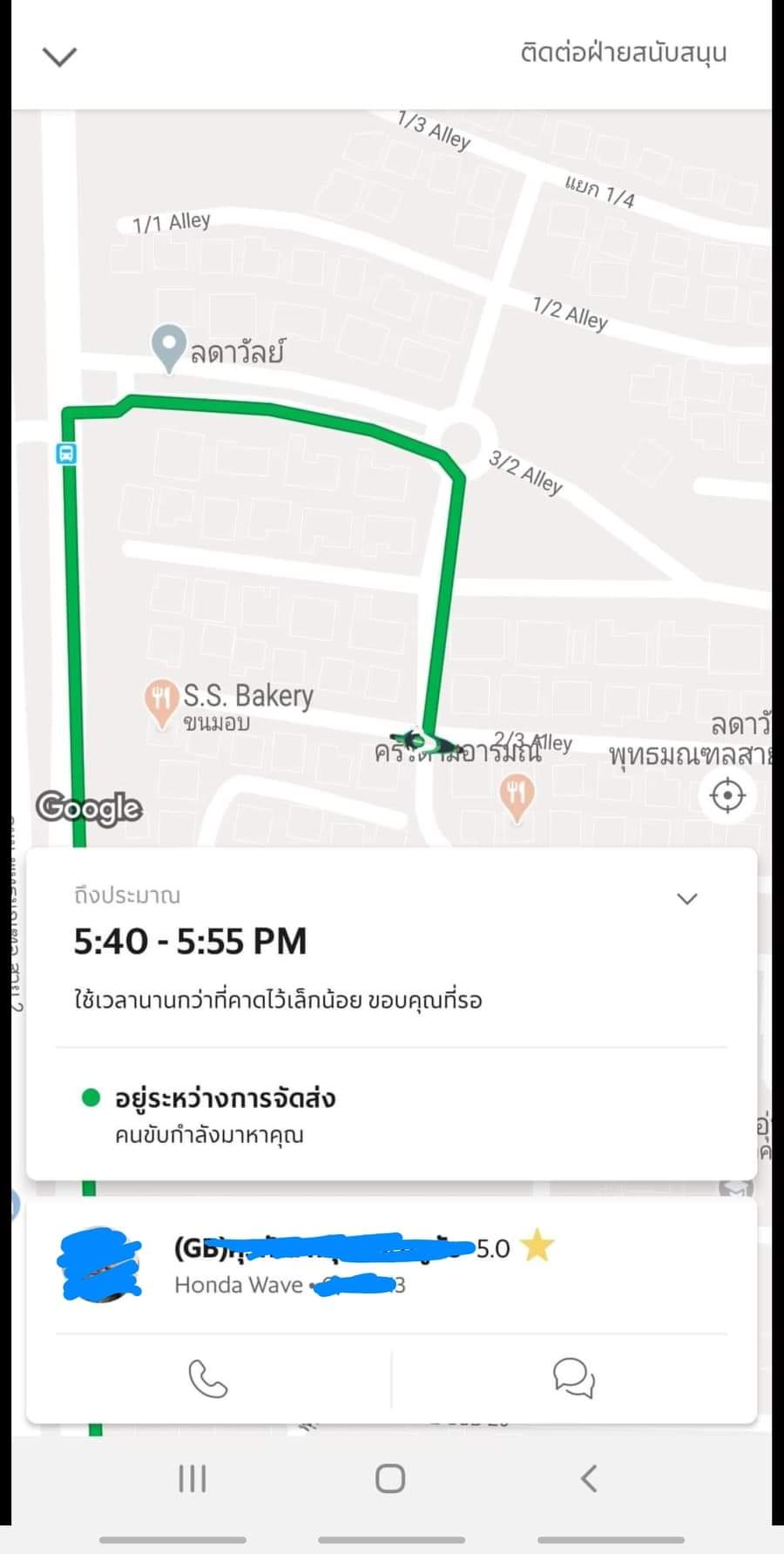 ความรู้สึกตอนแรกคิดว่าทำไมวนไปทางนั้นมันเป็นคนละทางกันพอเปิดดูสักพักใครไปเปิดดูใน google maps ถึงได้รู้เลยครับว่าซอยที่วนเข้าไปเป็นหมู่บ้านอื่น เป็นถนนส่วนบุคคลไม่ให้คนนอกเข้าในใจคิดแล้วว่าคงเข้าไปรับงานอื่นแน่นอน (ก็แอบคิดนะครับว่าเขาหลงทางหรือเปล่าเข้าหมู่บ้านผิดแต่พอดูจาก application แล้วของคนขับก็มีเส้นทางหมุดให้ขับมาตามหมุดที่เราให้ไว้)