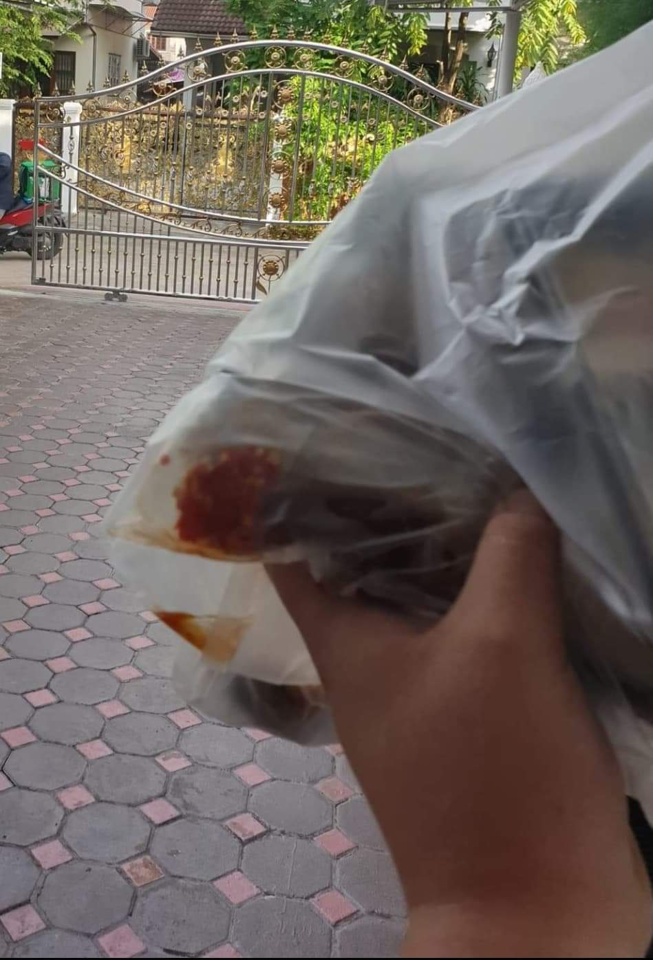 แล้วก็เป็นไปตามที่เราคิดเอาไว้ครับอาหารมานี่สภาพเละมากโดนทับจากของอย่างอื่นน้ำไหลนองอยู่